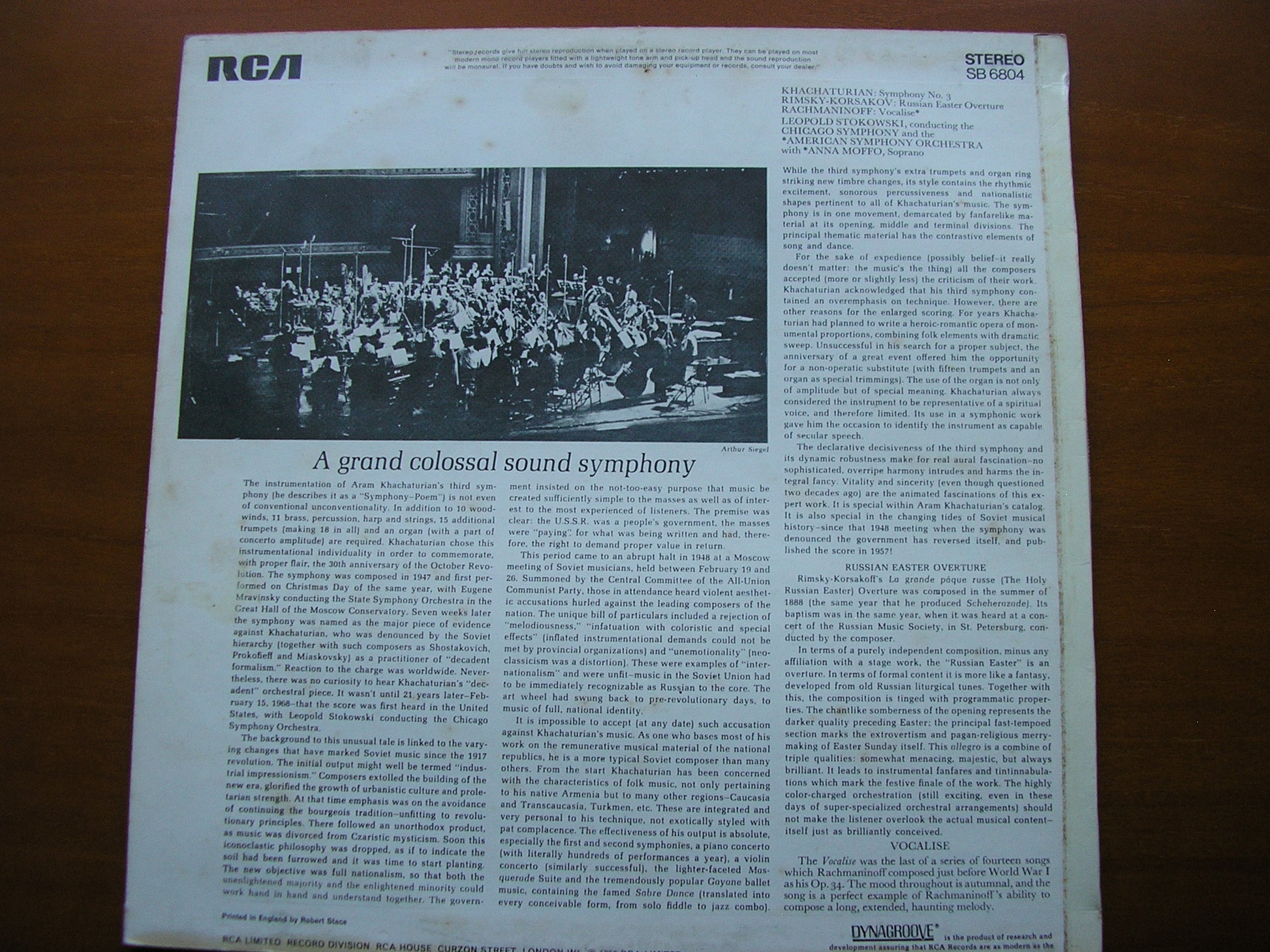 KHACHATURIAN: SYMPHONY No. 3 / RIMSKY-KORSAKOV: RUSSIAN EASTER FESTIVAL MOFFO / CHICAGO SYMPHONY / STOKOWSKI SB 6804