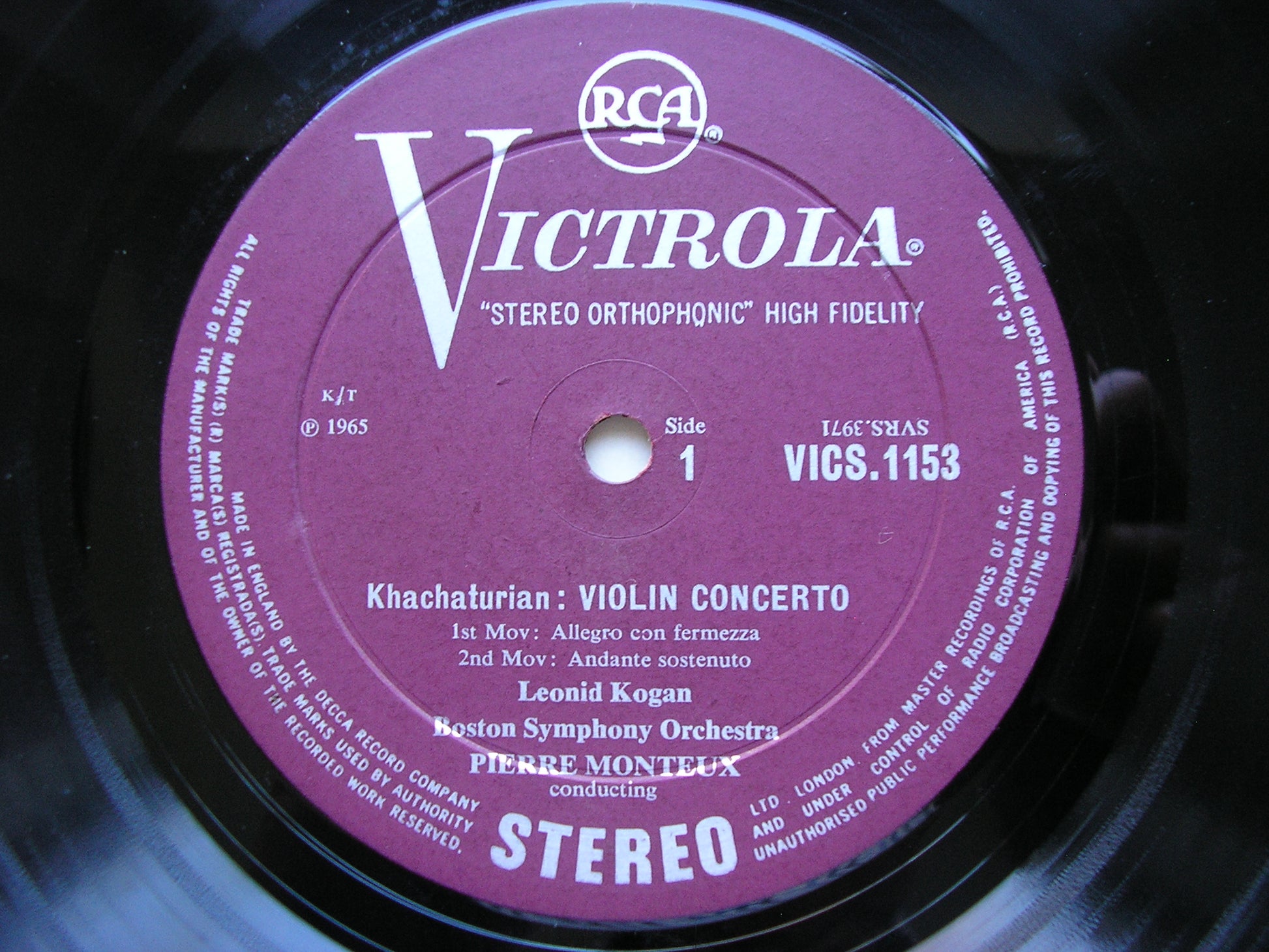 VICS 1153  KHACHATURIAN: VIOLIN CONCERTO      LEONID KOGAN / BOSTON SYMPHONY ORCHESTRA / PIERRE MONTEUX