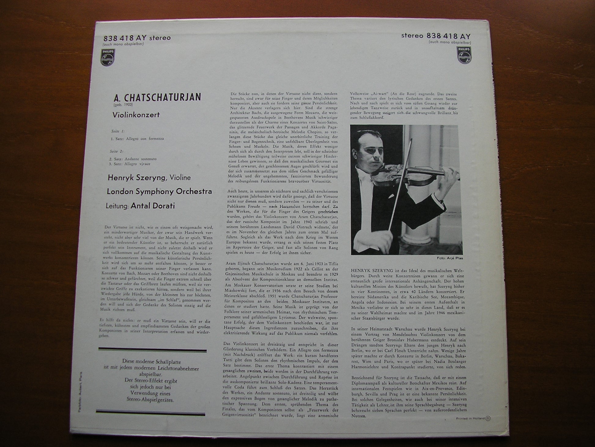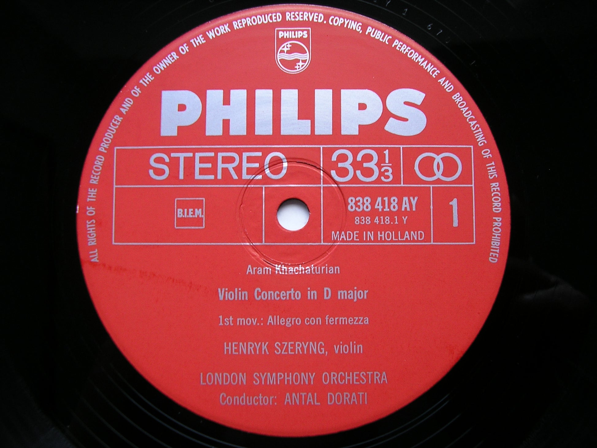 838 418 AY  KHACHATURIAN: VIOLIN CONCERTO     HENRYK SZERYNG / LONDON SYMPHONY ORCHESTRA / ANTAL DORATI