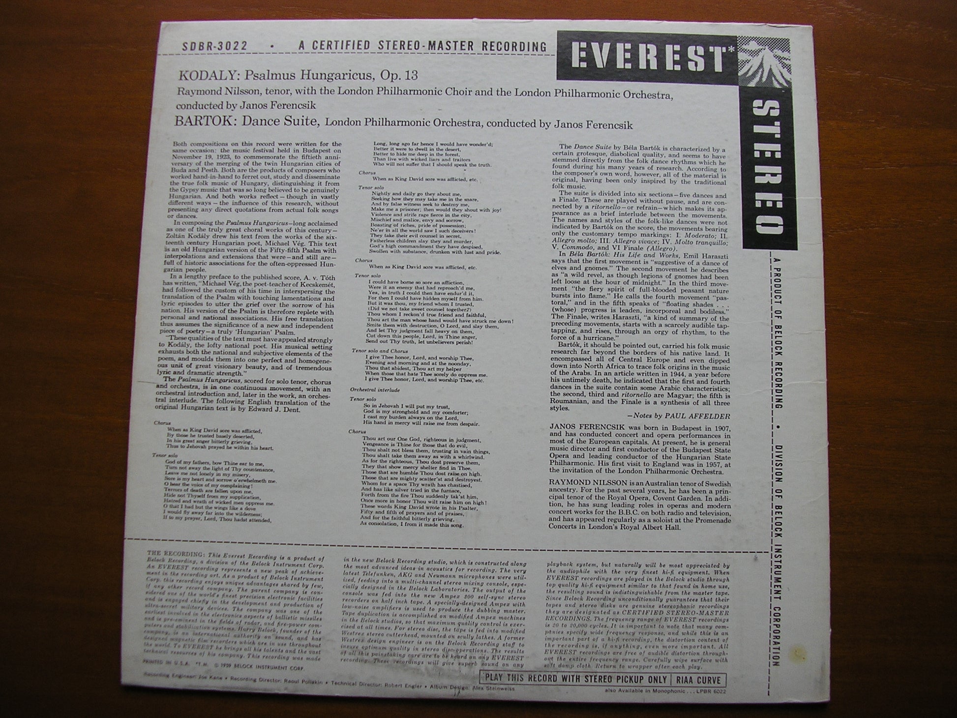 SDBR 3022  KODALY: PSALMUS HUNGARICUS   RAYMOND NILSSON / BARTOK: DANCE SUITE    JANOS FERENCSIK / LONDON PHILHARMONIC ORCHESTRA