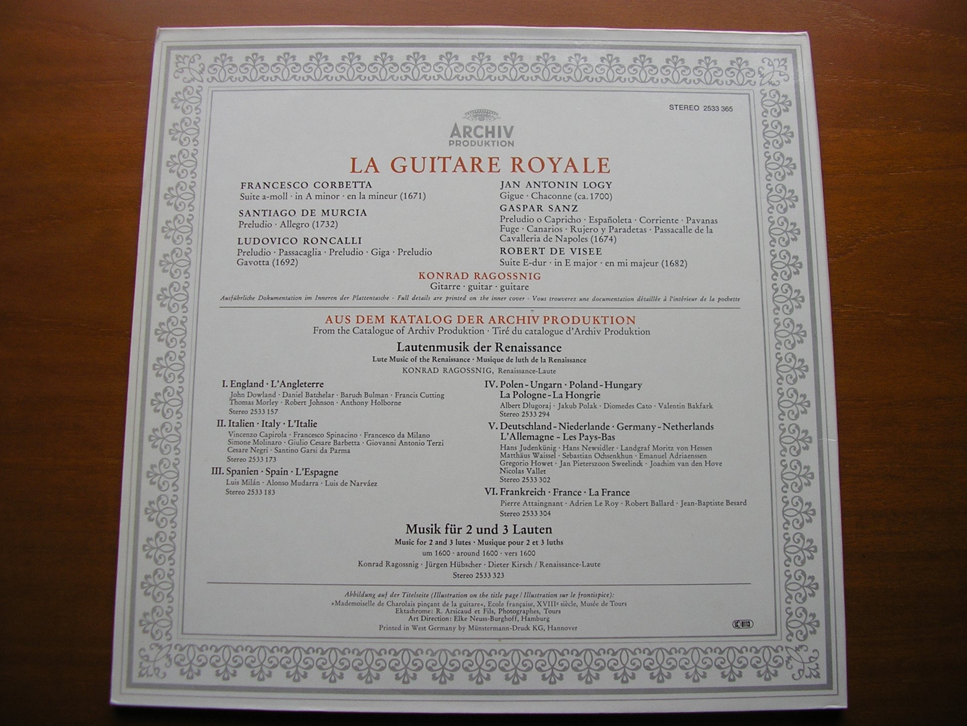 2533 365  BAROQUE GUITAR MUSIC     KONRAD RAGOSSNIG