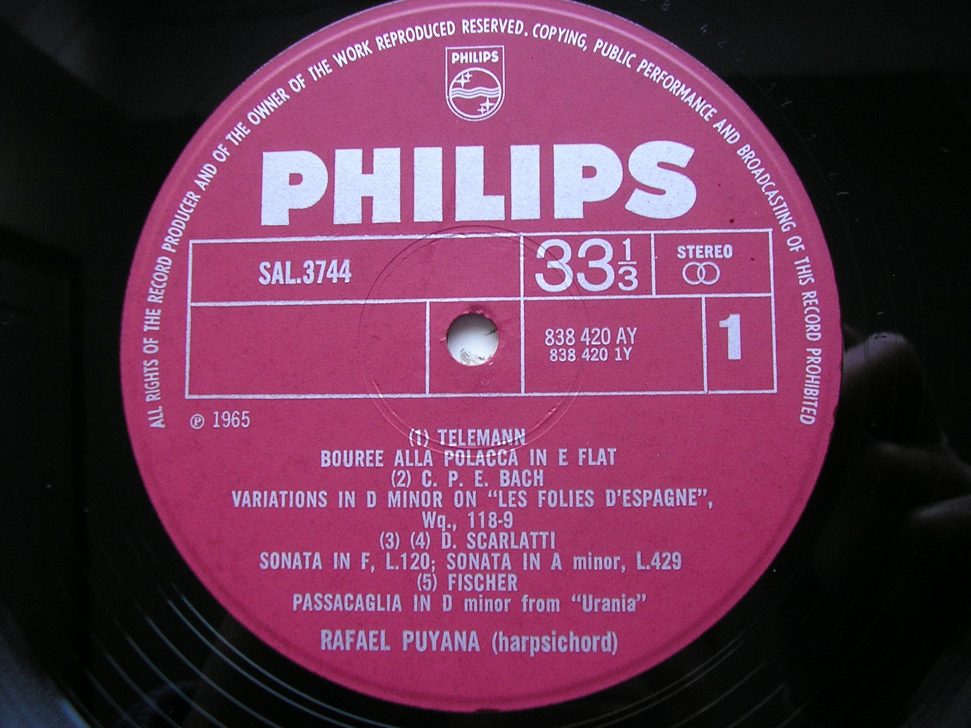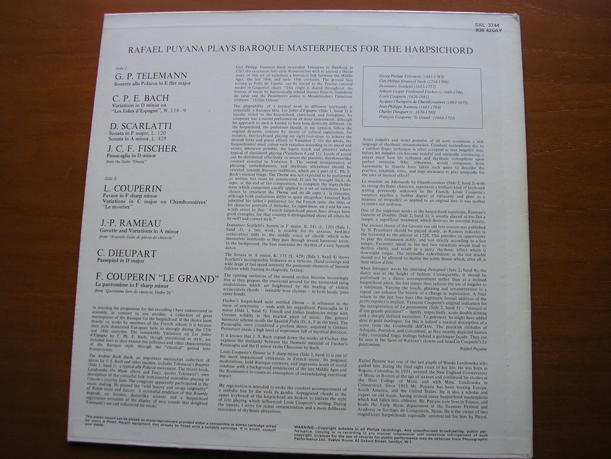 SAL 3744  FISCHER / DIEUPART / RAMEAU / TELEMANN / COUPERIN / SCARLATTI: MUSIC FOR HARPSICHORD     RAFAEL PUYANA