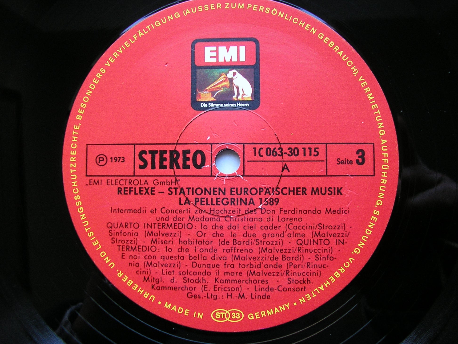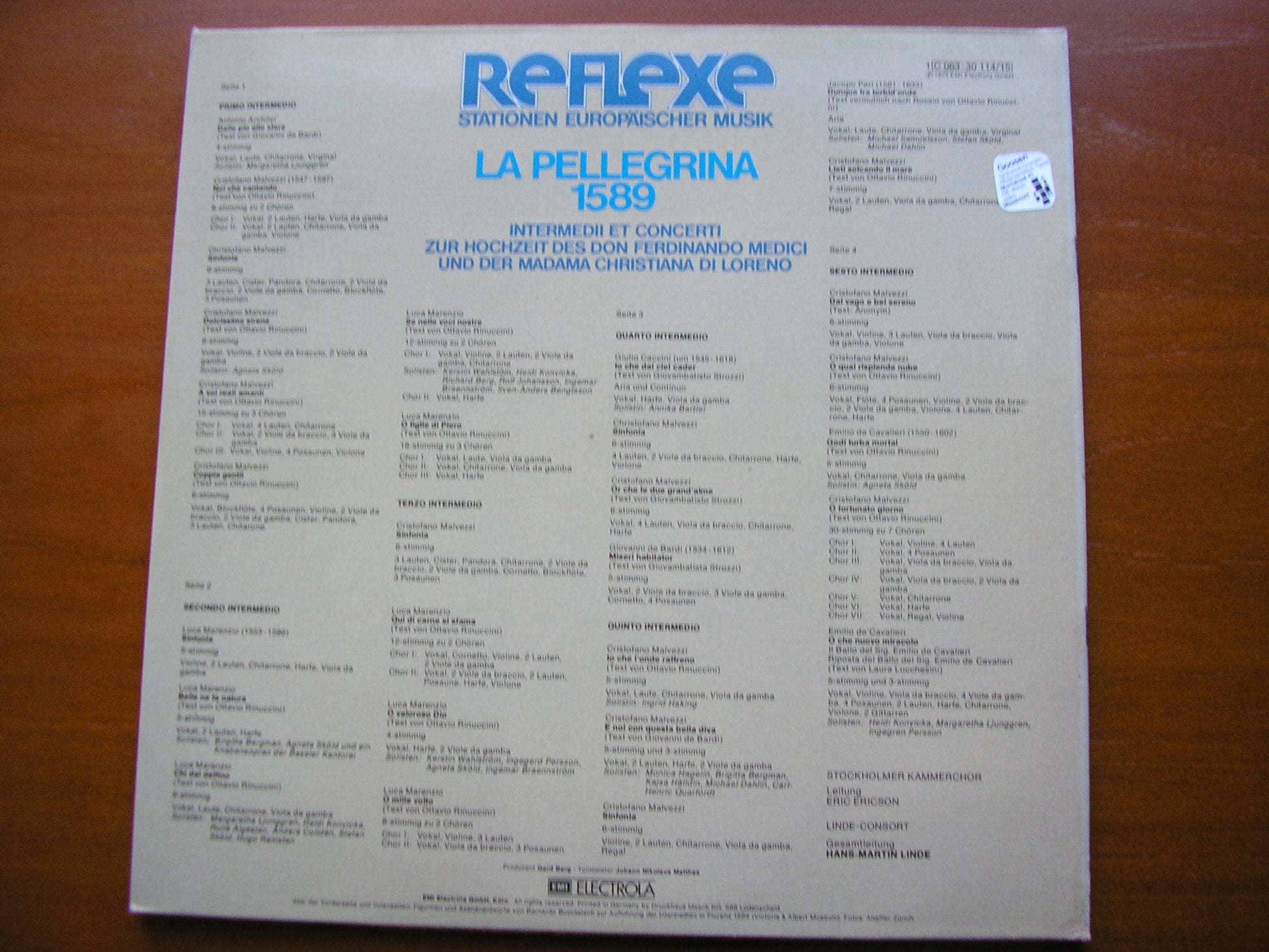 063-30 114/5   LA PELLEGRINA: MALVEZZI / ARCHILEI / MARENZIO / CACCINI / DE BARDI / PERI / de CAVALIERI      HANS-MARTIN LINDE / LINDE CONSORT / STOCKHOLM CHAMBER CHOIR / ERIC ERICSON