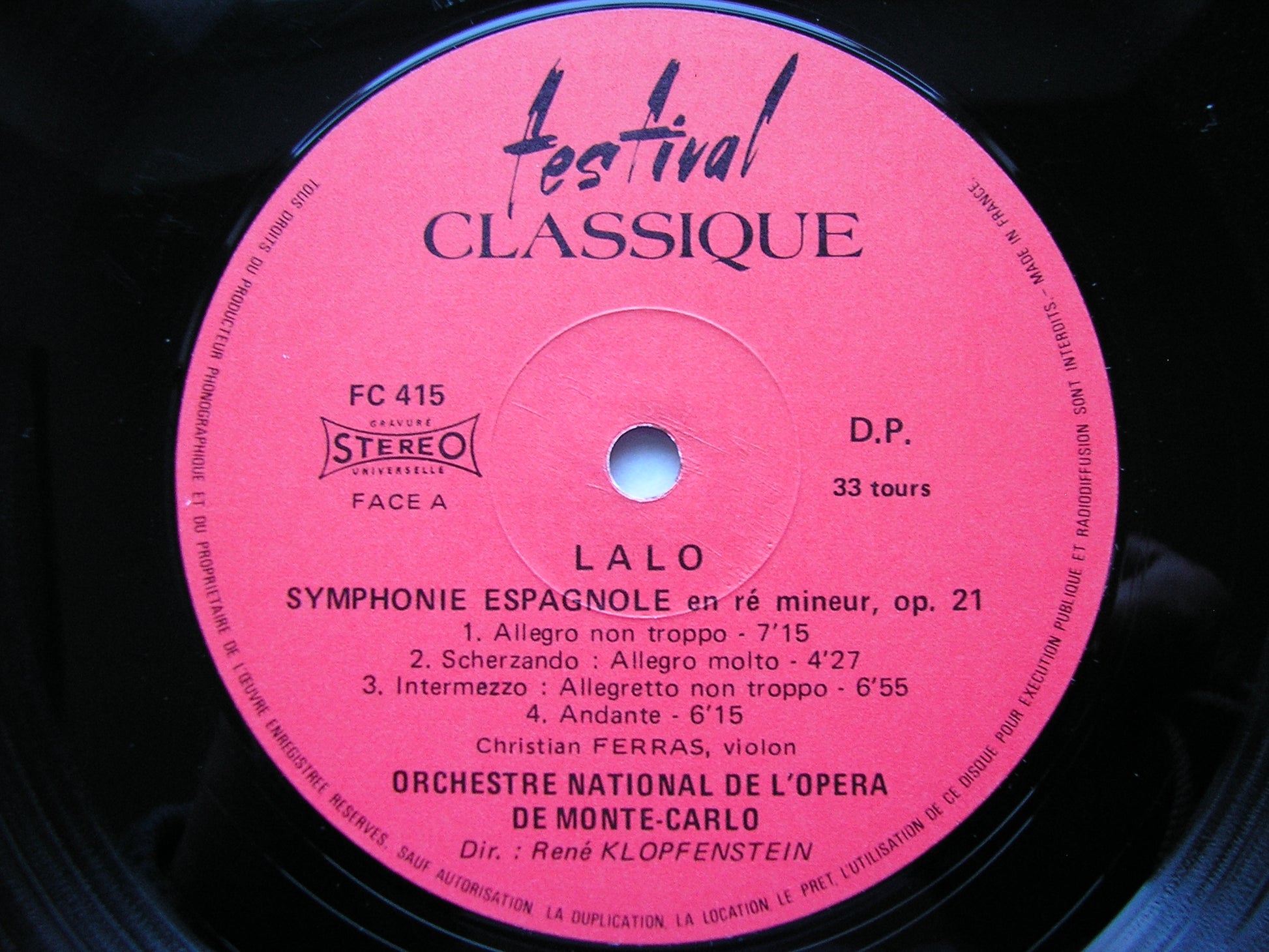 LALO: SYMPHONIE ESPAGNOLE FERRAS / MONTE CARLO ORCHESTRA / KLOPFENSTEIN FC 415