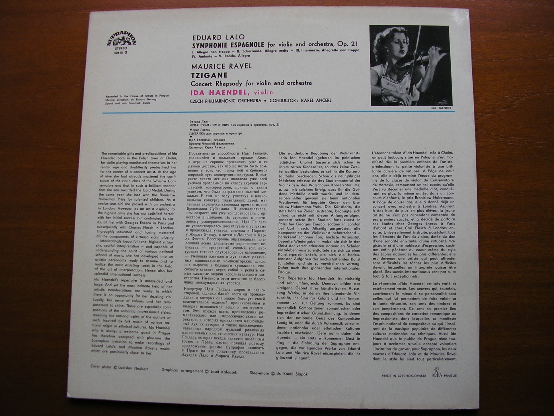 SUA ST 50615  LALO: SYMPHONIE ESPAGNOLE / RAVEL: TZIGANE    IDA HAENDEL / CZECH PHILHARMONIC ORCHESTRA / KAREL ANCERL