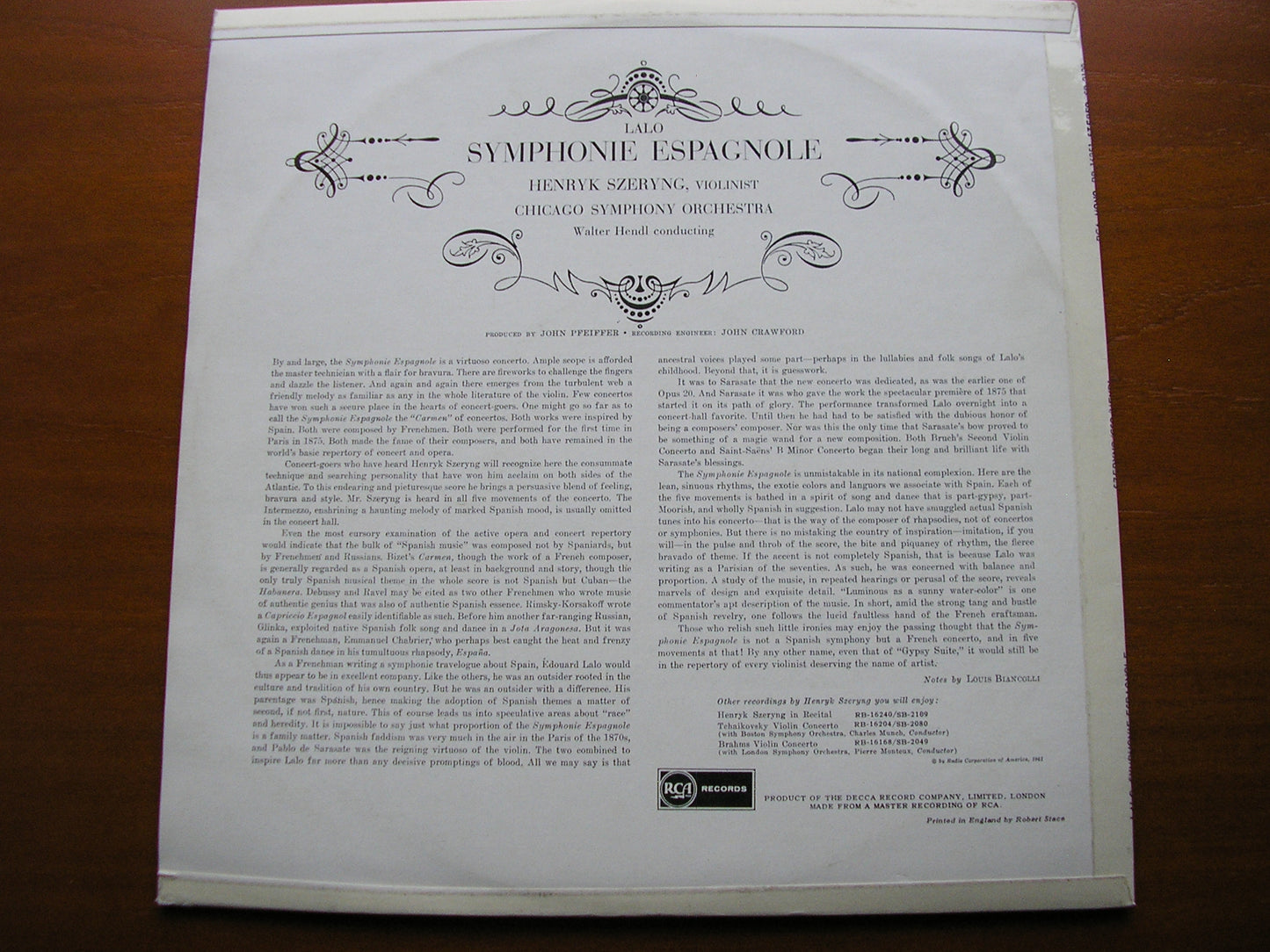 RB 16251  LALO: SYMPHONIE ESPAGNOLE    HENRYK SZERYNG / CHICAGO SYMPHONY ORCHESTRA / WALTER HENDL