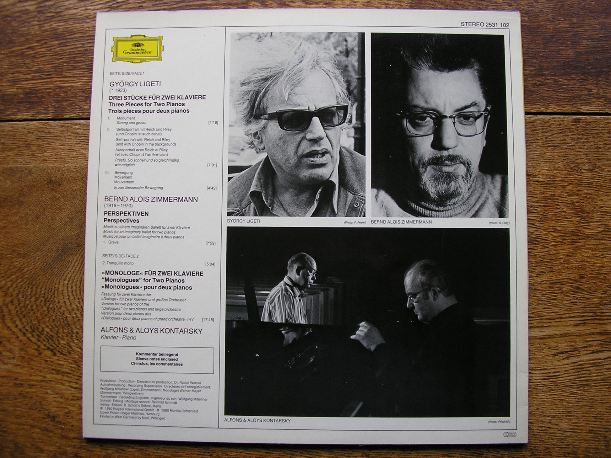 2531 102  LIGETI:  THREE PIECES FOR TWO PIANOS  ZIMMERMANN:  PERSPEKTIVEN / MONOLOGUES FOR TWO PIANOS      ALFONS & ALOYS KONTARSKY