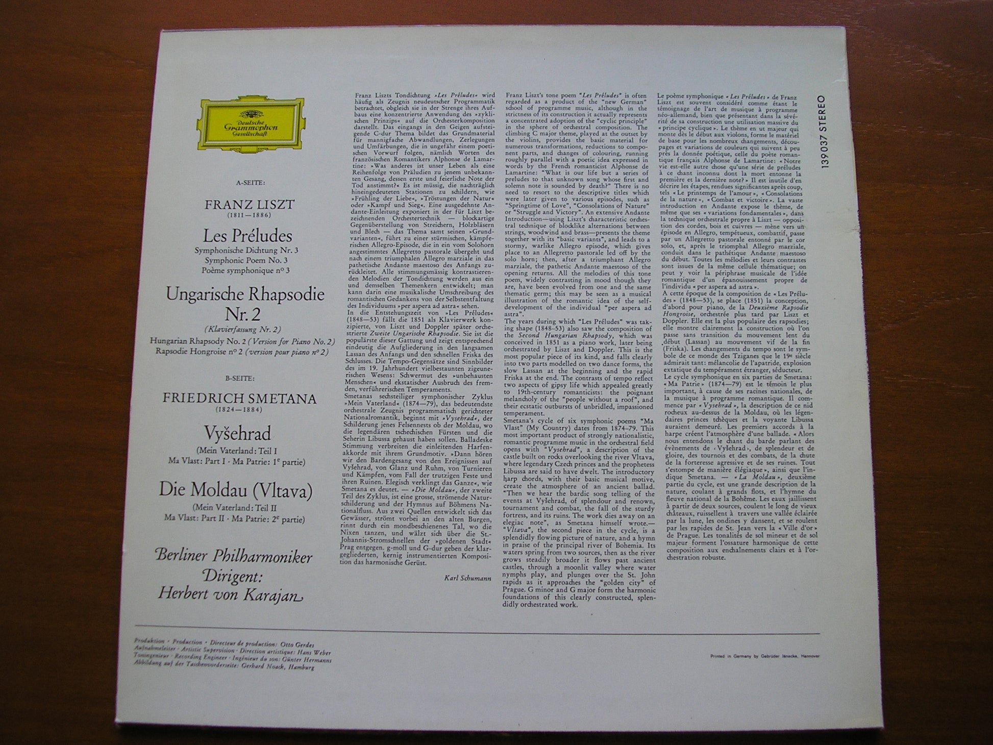 LISZT: LES PRELUDES / HUNGARIAN RHAPSODY No. 2 / SMETANA: VYSEHRAD / VLTAVA from MA VLAST KARAJAN / BERLIN PHILHARMONIC 139 037