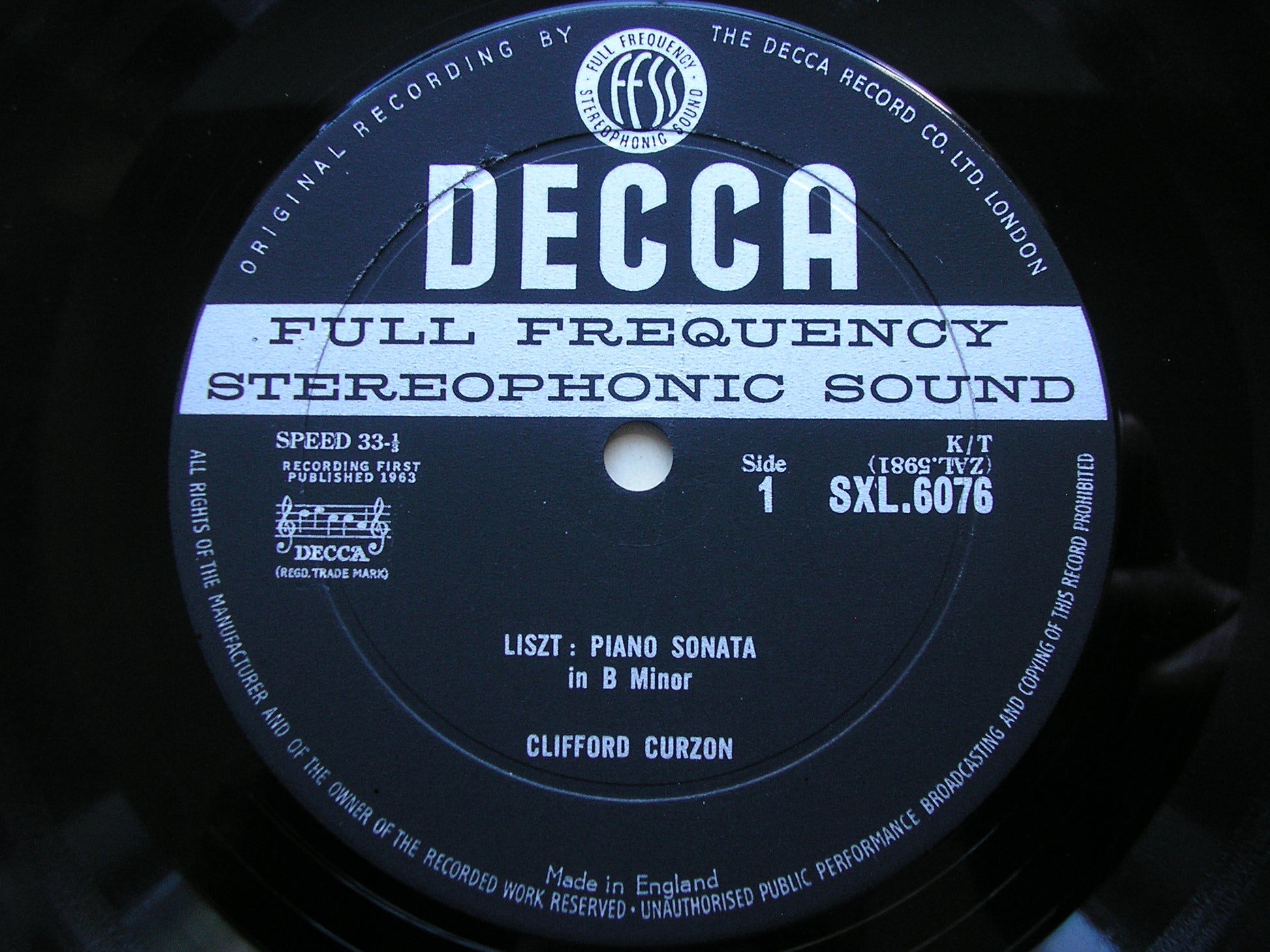 LISZT: SONATA IN B Minor / BERCEUSE / LIEBESTRAUM / GNOMENREIGEN CLIFFORD CURZON SXL 6076