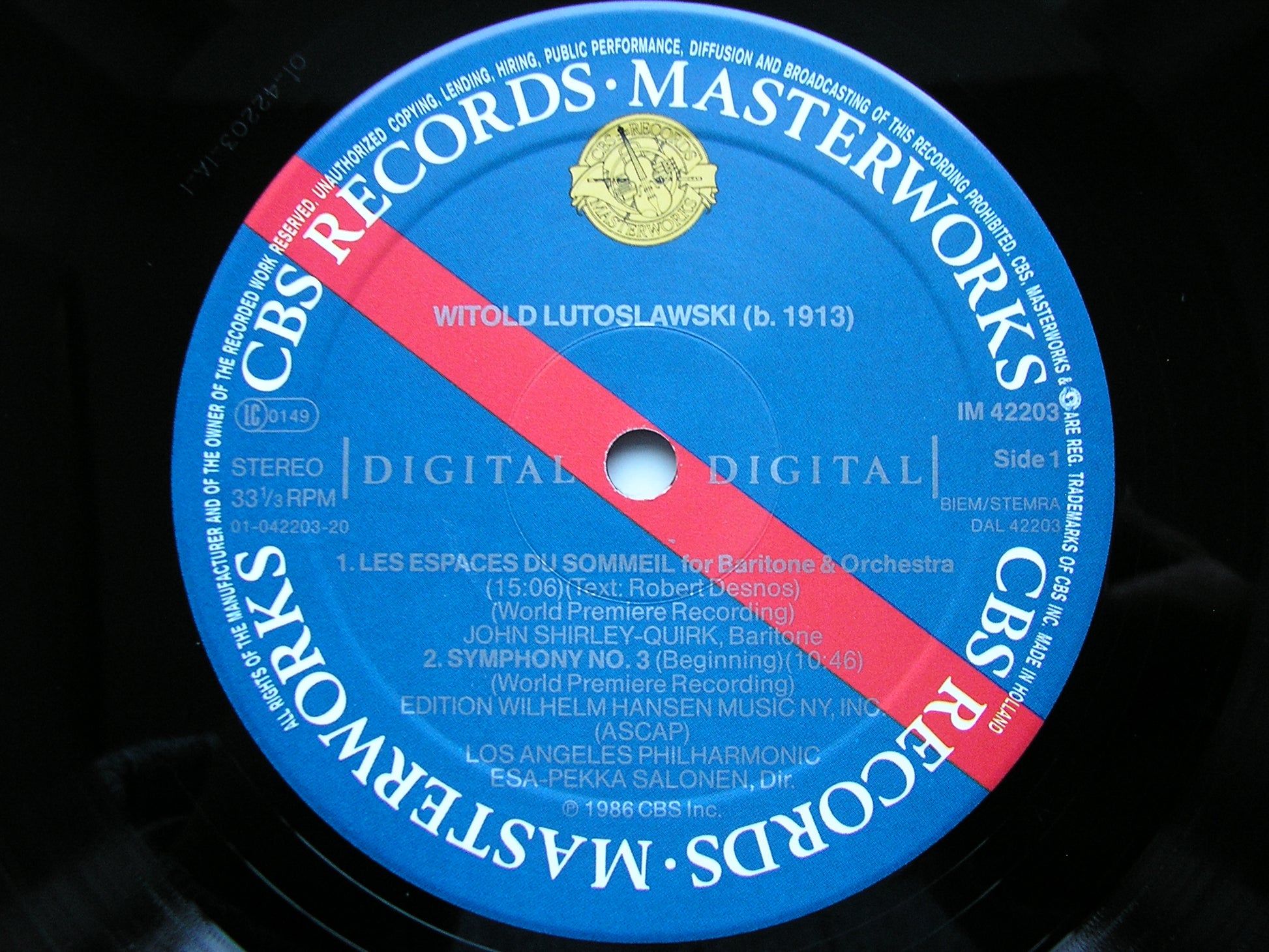 IM 42203  LUTOSLAWSKI: SYMPHONY No. 3 / LES ESPACES DU SOMMEIL    JOHN SHIRLEY - QUIRK / LOS ANGELES PHILHARMONIC ORCHESTRA / ESA - PEKKA SALONEN