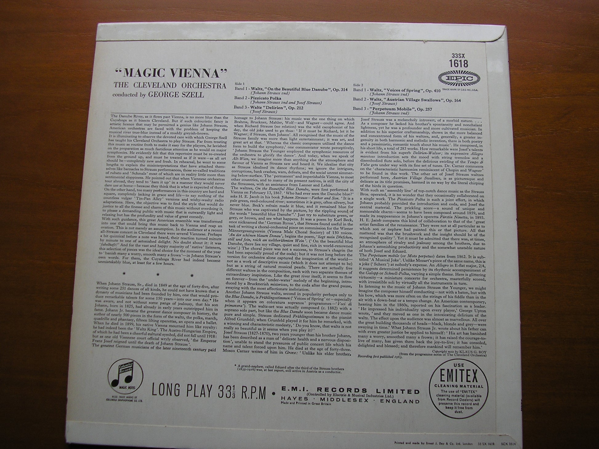 MAGIC VIENNA: JOHANN & JOSEF STRAUSS SZELL / CLEVELAND ORCHESTRA 33SX 1618