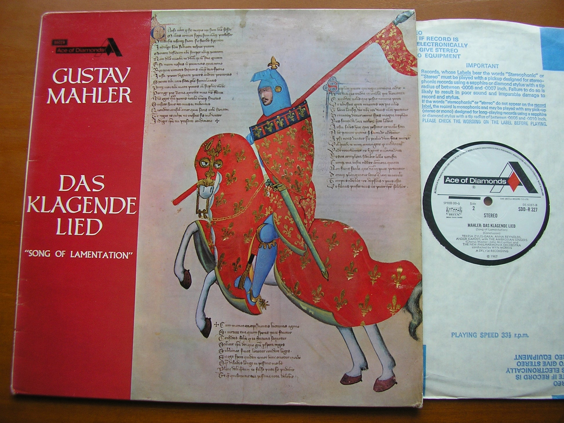 SDD-R 327  MAHLER: DAS KLAGENDE LIED     TERESA ZYLIS-GARA . ANNA REYNOLDS / ANDOR KAPOSY / NEW PHILHARMONIA ORCHESTRA / WYN MORRIS