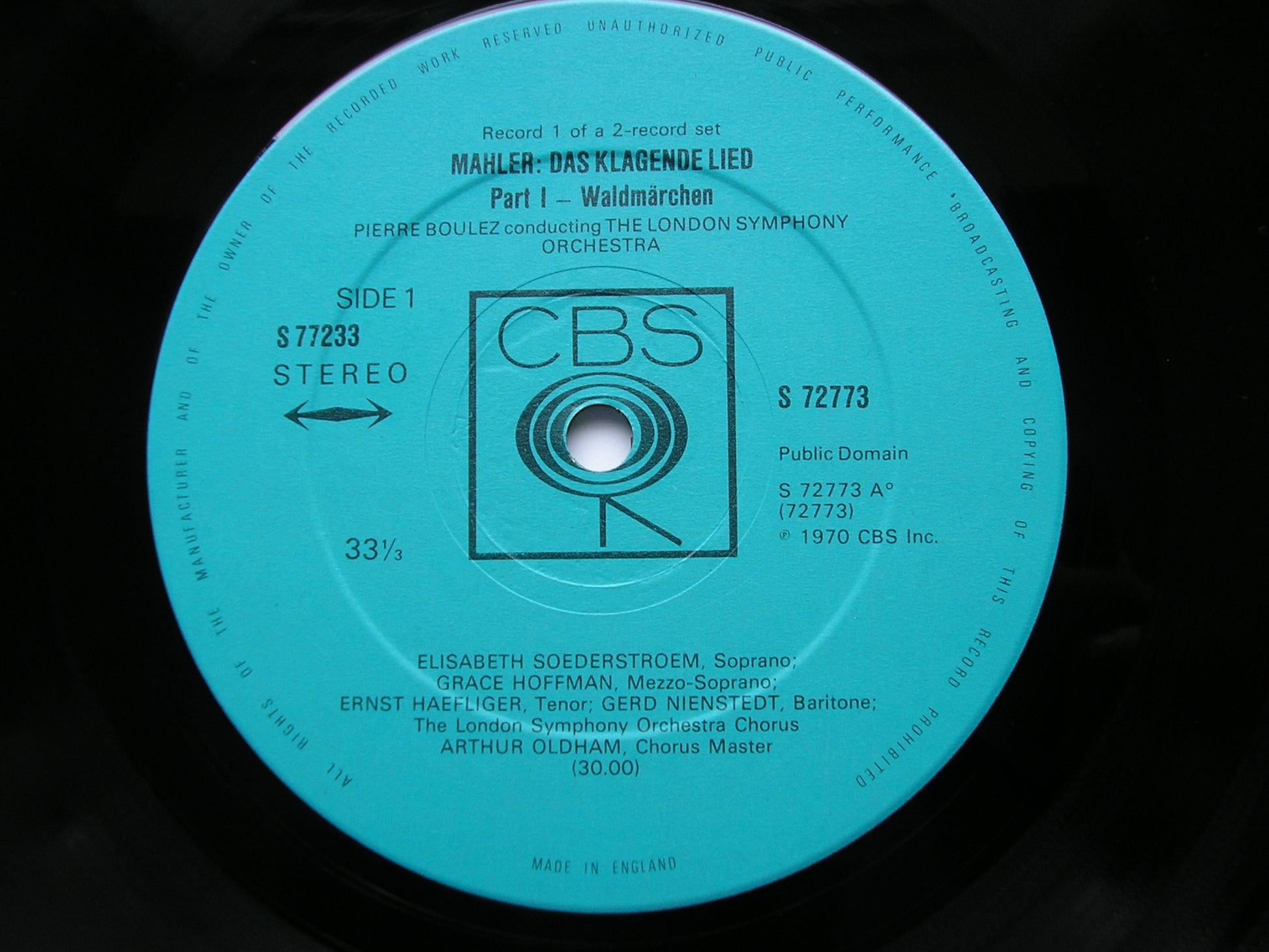 MAHLER: DAS KLAGENDE LIED / SYMPHONY No. 10 Adagio SOLOISTS / LONDON SYMPHONY / BOULEZ 2LP 77233