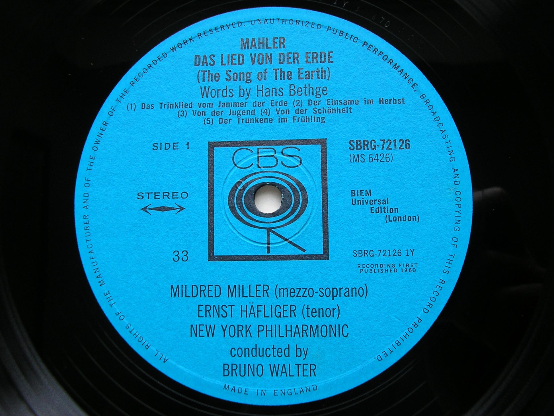 SBRG 72126  MAHLER: DAS LIED VON DER ERDE      MILDRED MILLER / ERNST HAFLIGER / NEW YORK PHILHARMONIC ORCHESTRA / BRUNO WALTER