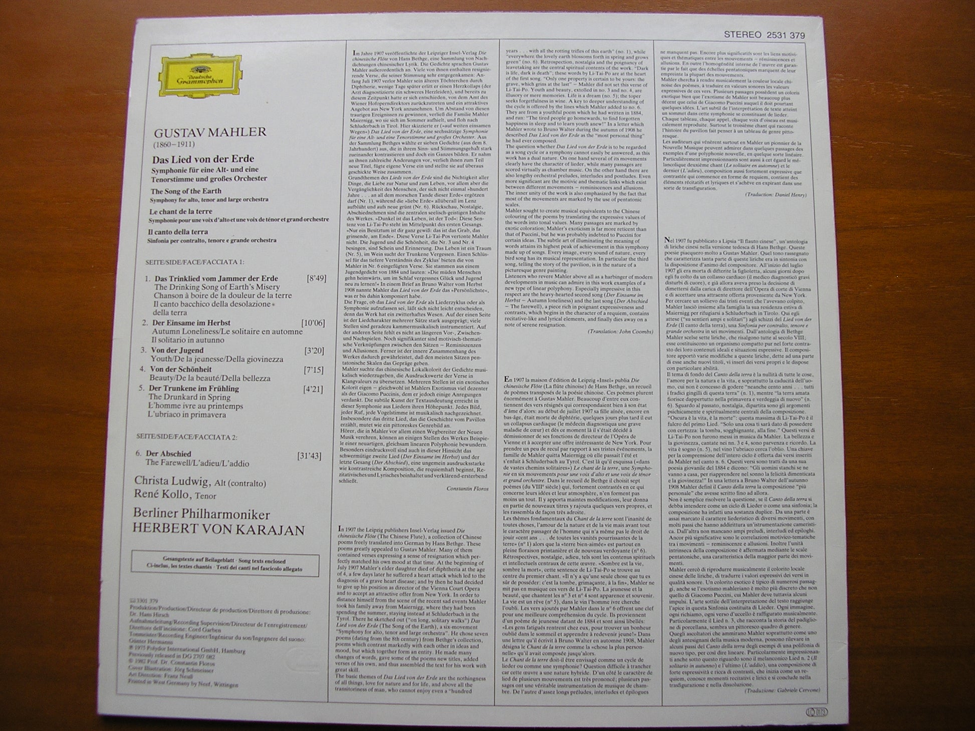 MAHLER: DAS LIED VON DER ERDE LUDWIG / KOLLO / BERLIN PHILHARMONIC / KARAJAN 2531 379