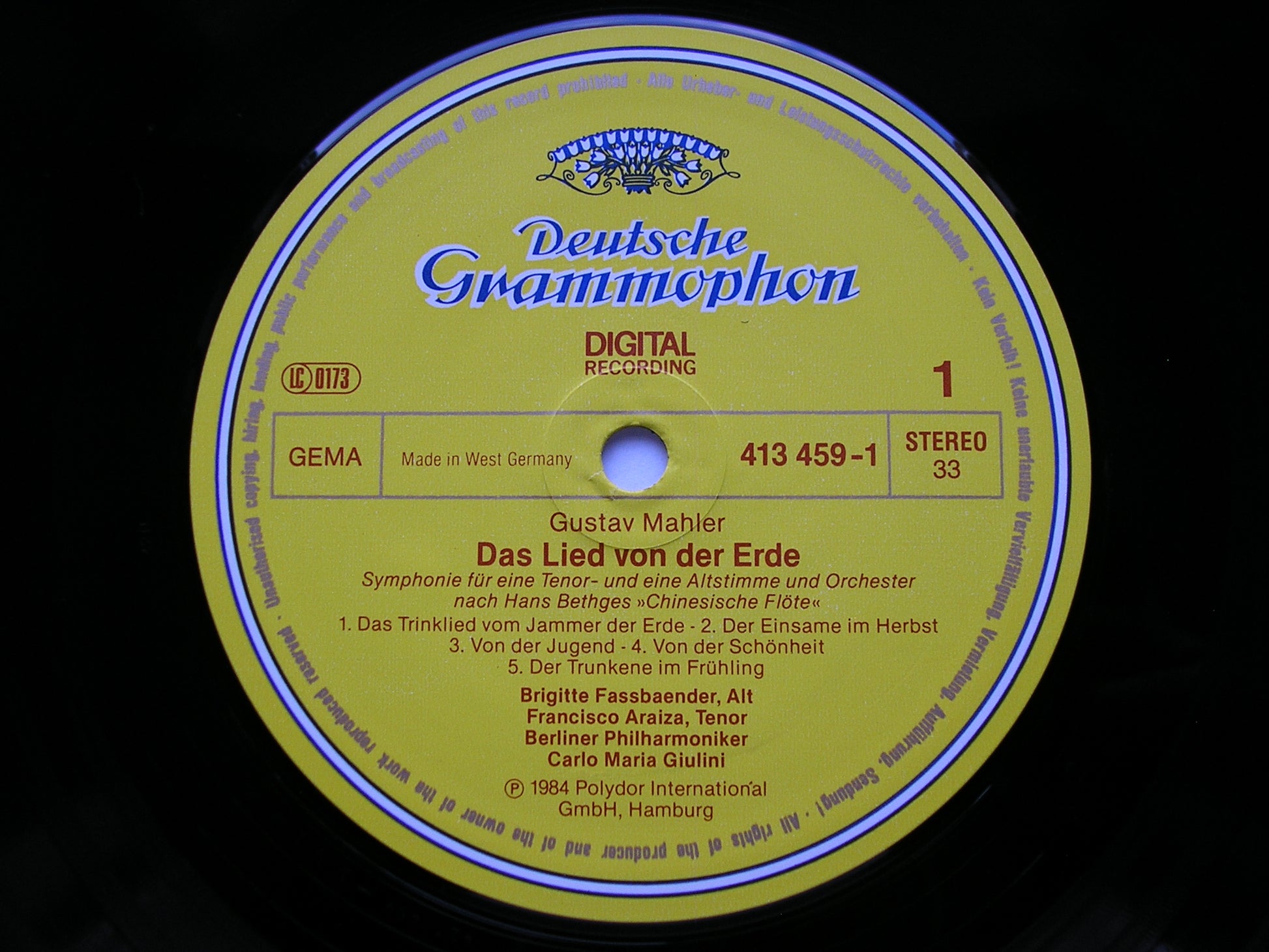 413 459  MAHLER: DAS LIED VON DER ERDE     BRIGITTE FASSBAENDER / FRANCISCO ARAIZA / BERLIN PHILHARMONIC ORCHESTRA / CARLO MARIA GIULINI