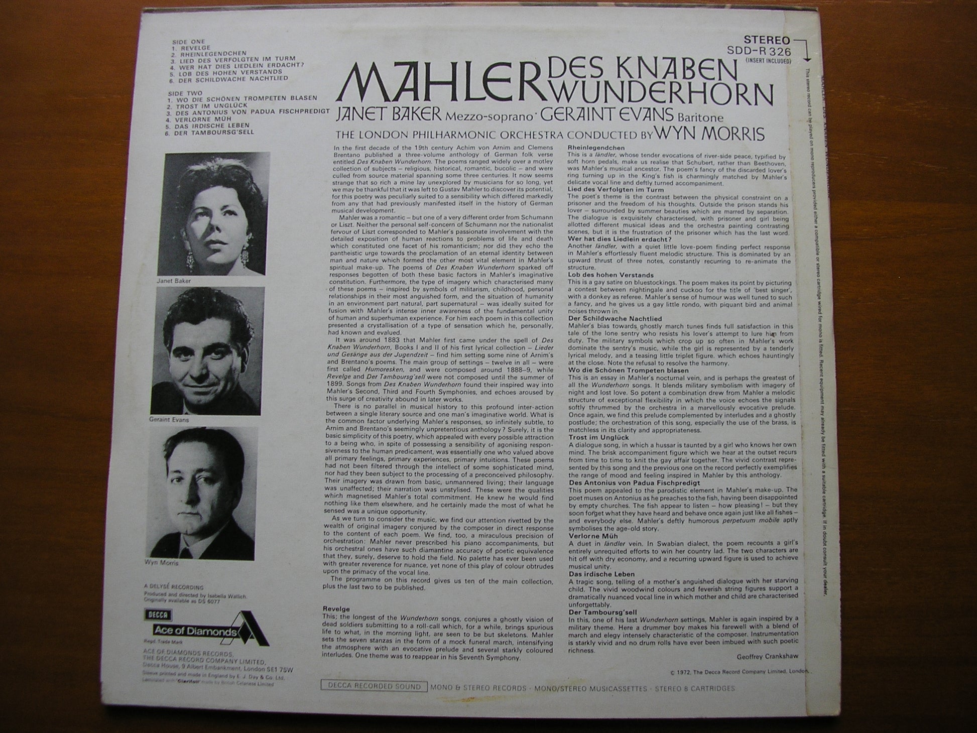 SDD-R 326  MAHLER: DES KNABEN WUNDERHORN      JANET BAKER / GERAINT EVANS / LONDON PHILHARMONIC ORCHESATRA / WYN MORRIS