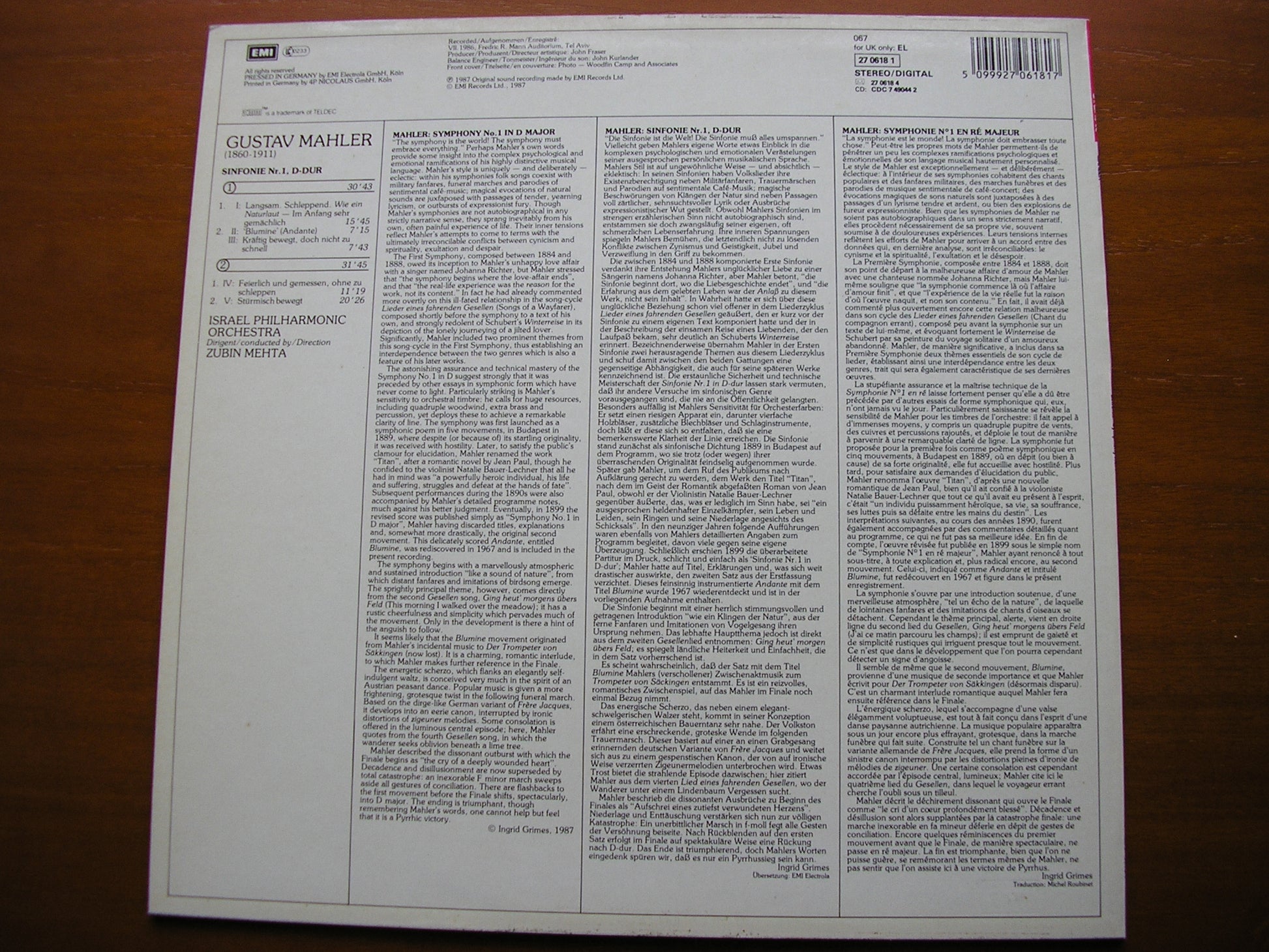 MAHLER: SYMPHONY No. 1 'Blumine' MEHTA / ISRAEL PHILHARMONIC 27 0618