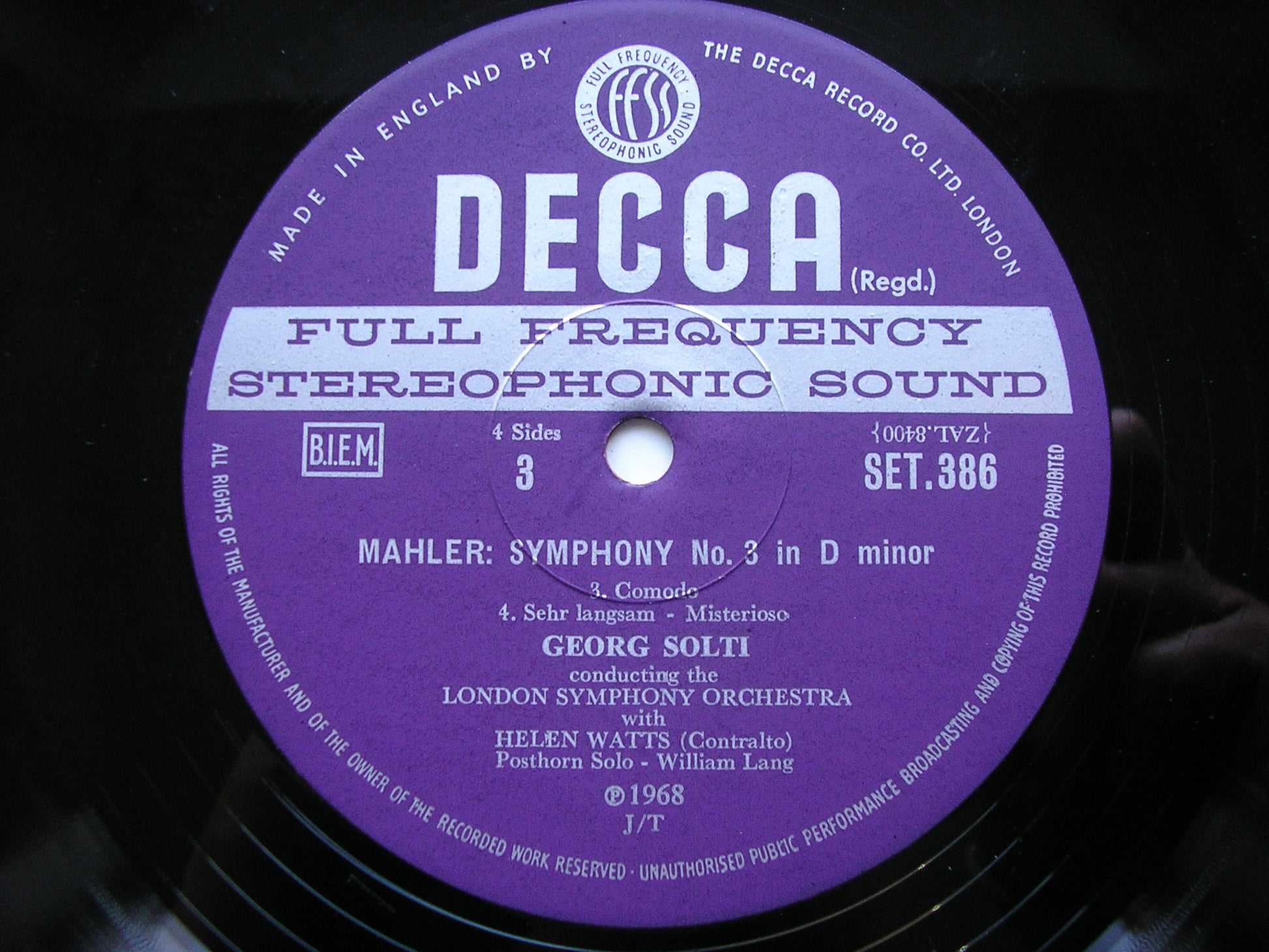 MAHLER: SYMPHONY No. 3 HELEN WATTS / LONDON SYMPHONY / SOLTI SET 385 / 6