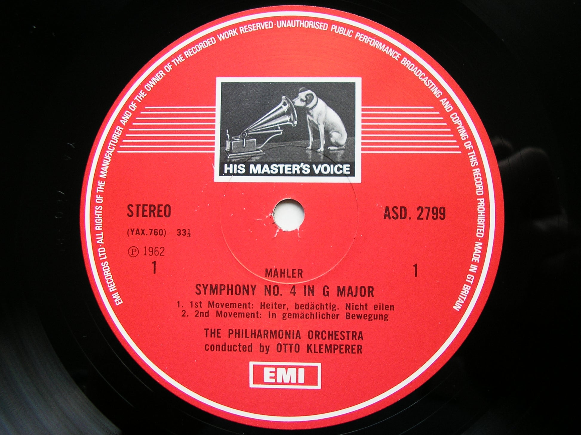 ASD 2799  MAHLER: SYMPHONY No. 4   ELISABETH SCHWARZKOPF / PHILHARMONIA ORCHESTRA / OTTO KLEMPERER