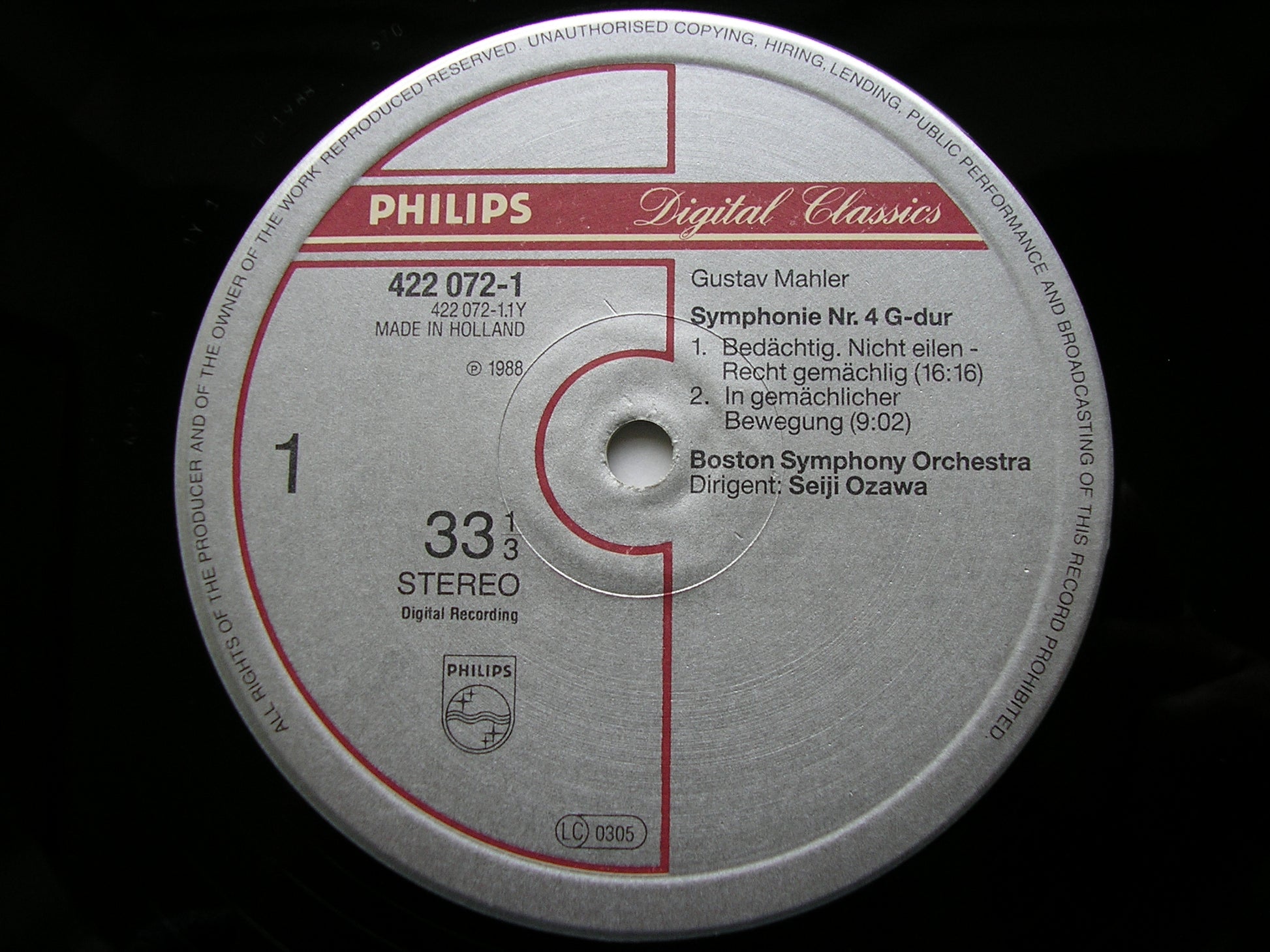422 072  MAHLER: SYMPHONY No. 4     KIRI TE KANAWA / BOSTON SYMPHONY ORCHESTRA / SEIJI OZAWA