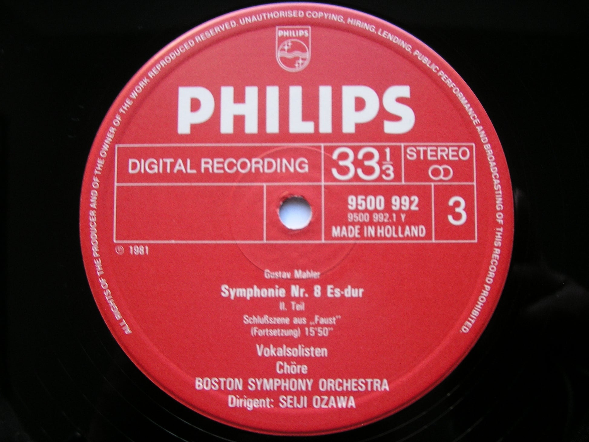6769 069  MAHLER: SYMPHONY No. 8    SOLOISTS / BOSTON SYMPHONY ORCHESTRA / SEIJI OZAWA