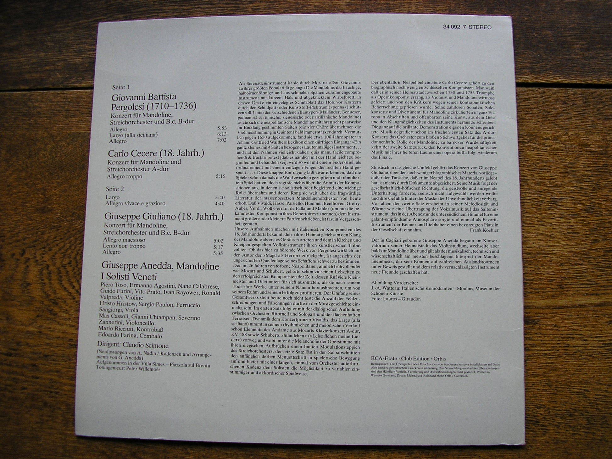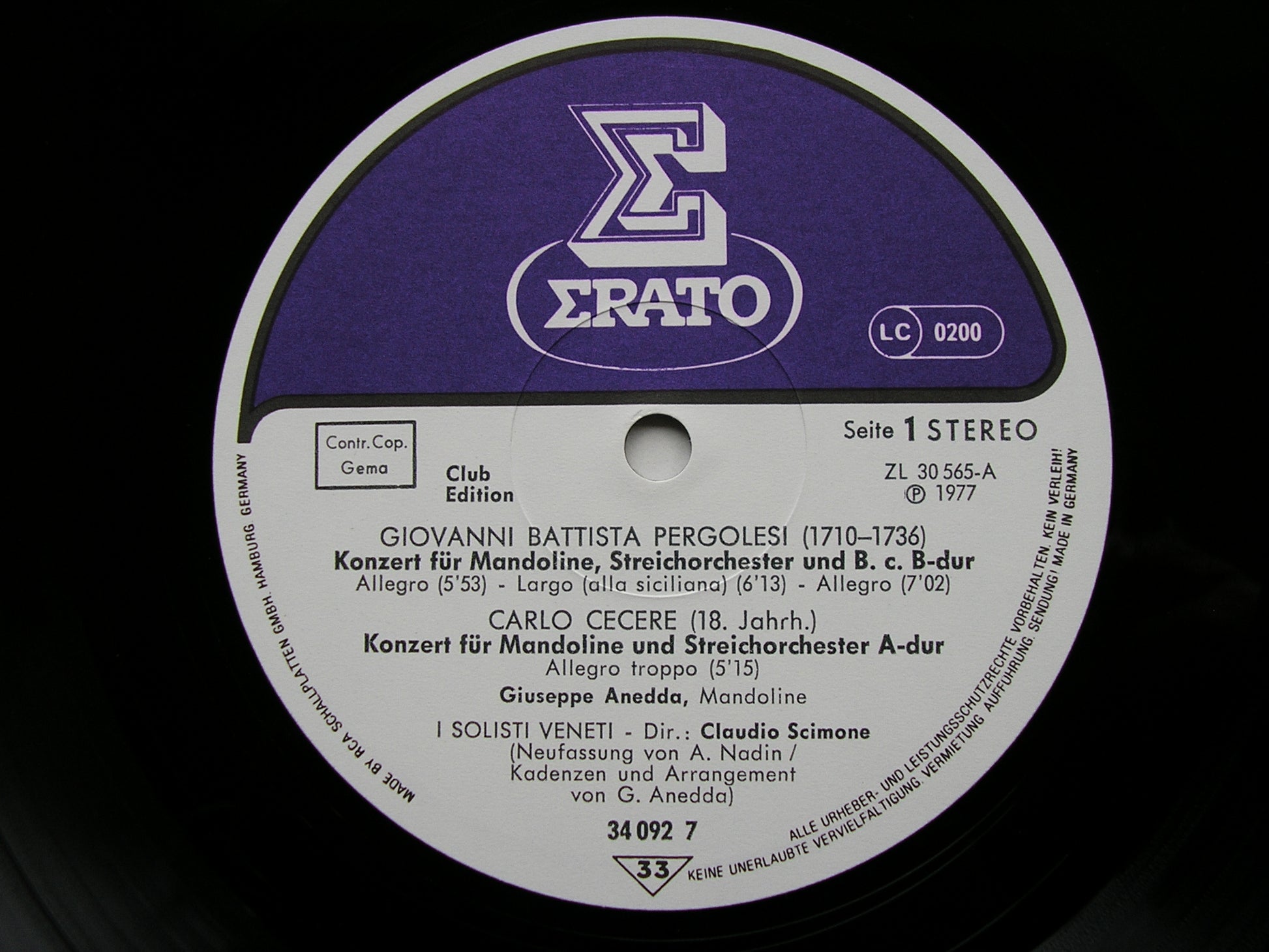 340927  MANDOLIN CONCERTOS BY PERGOLESI / CECERE / GIULIANO     GIUSEPPE ANEDDA / I SOLOISTI VENETI / CLAUDIO SCIMIONE