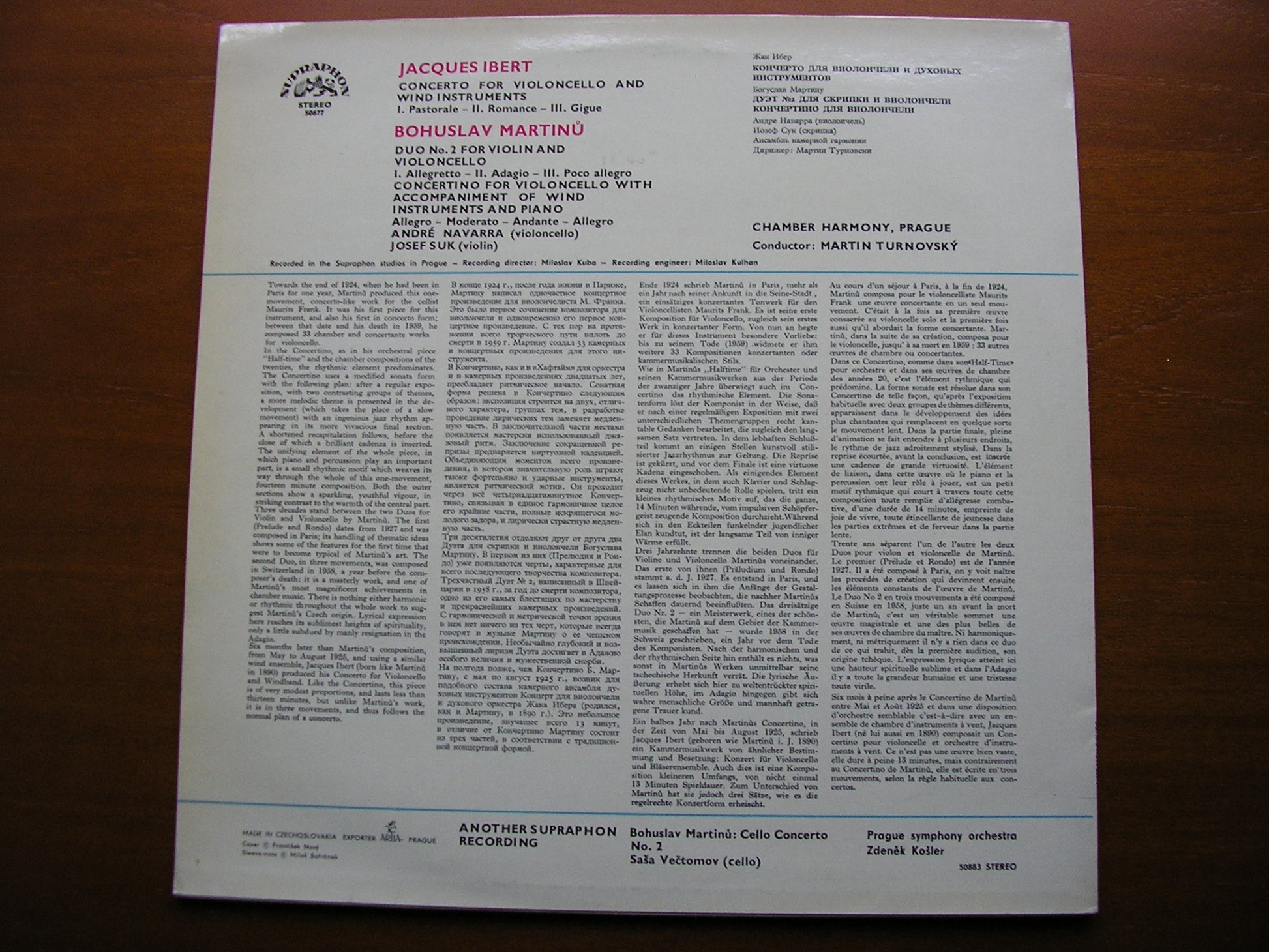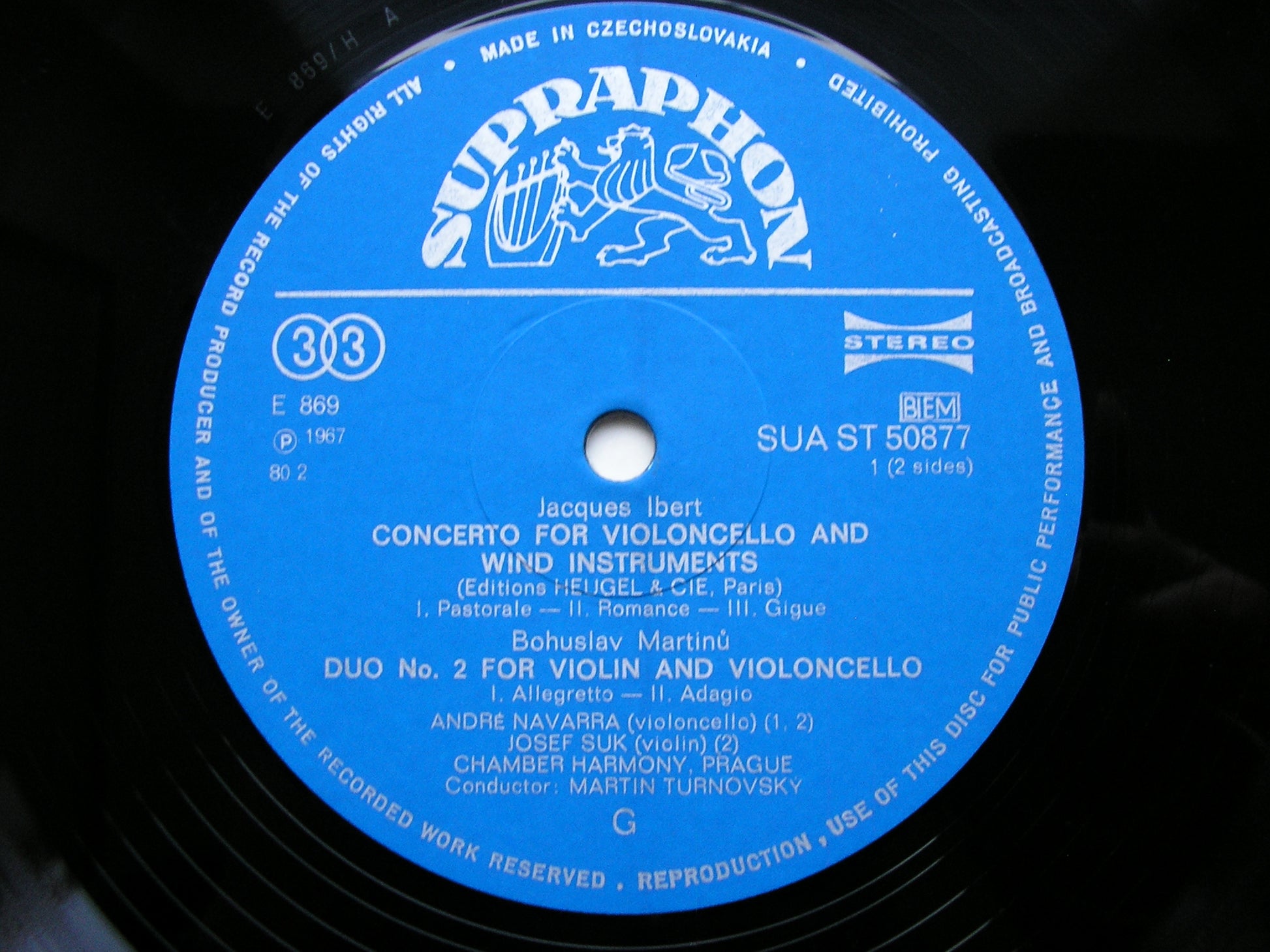 SUA ST 50877  MARTINU: CONCERTINO / DUO No. 2 / IBERT: CELLO CONCERTO    ANDRE NAVARRA / JOSEF SUK / PRAGUE CHAMBER ORCHESTRA / MARTIN TURNOVSKY