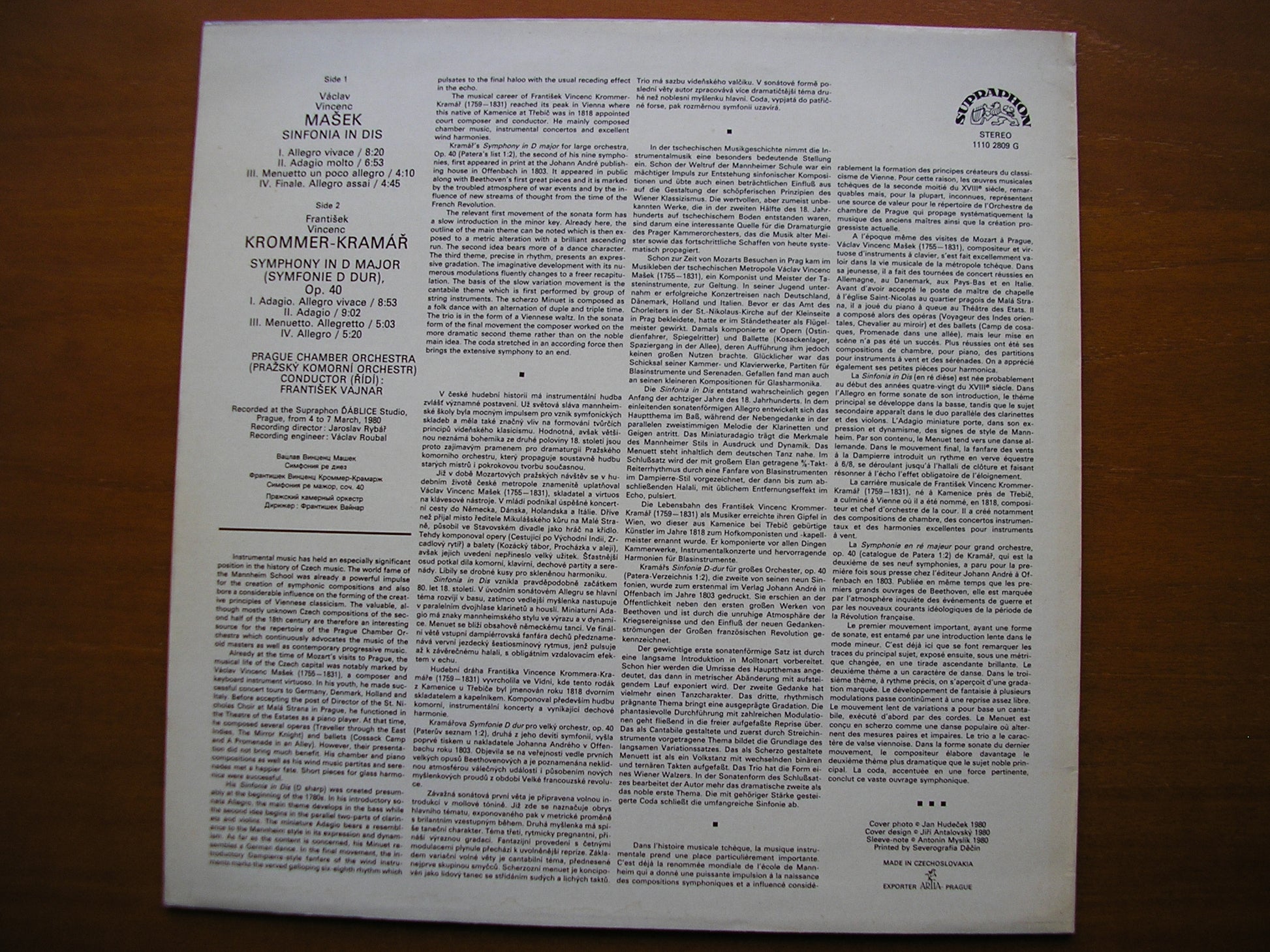 MASEK: SYMPHONY in D / KROMMER: SYMPHONY in D PRAGUE CHAMBER ORCHESTRA / VAJNAR 1110 2809