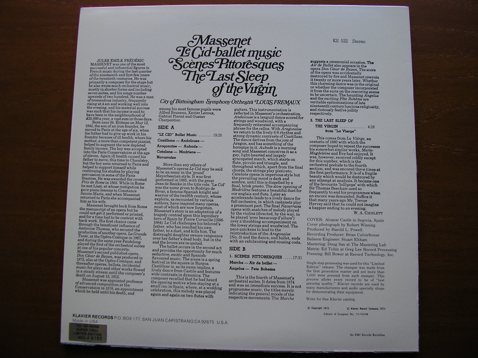 MASSENET: LE CID / SCENES PITTORESQUES LOUIS FREMAUX / CITY OF BIRMINGHAM SYMPHONY KS 522