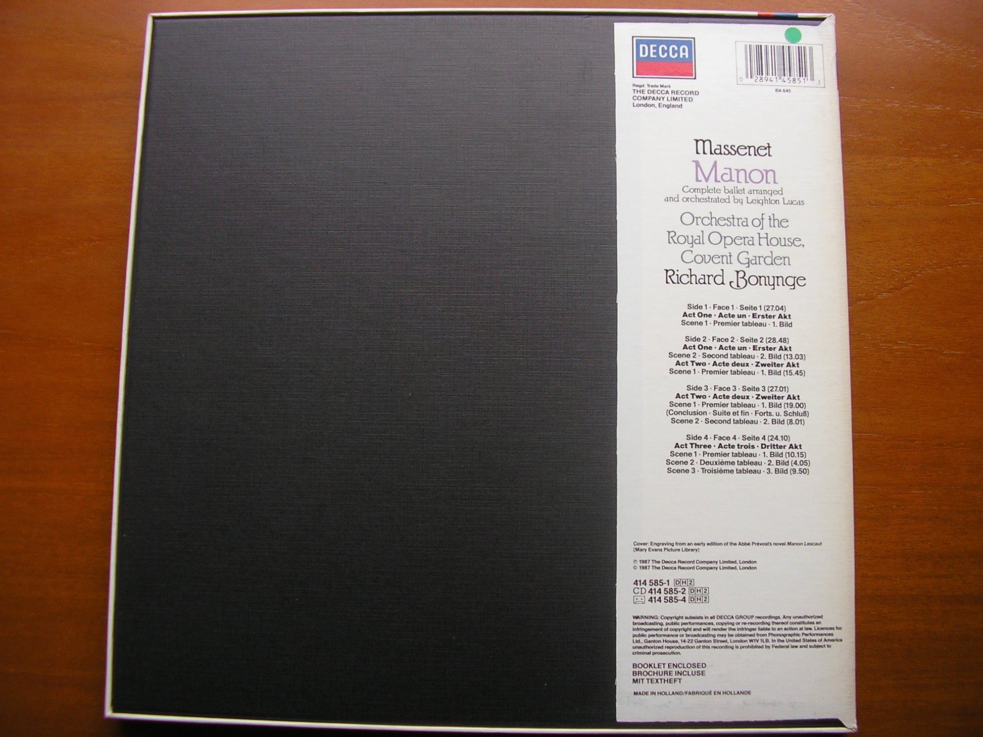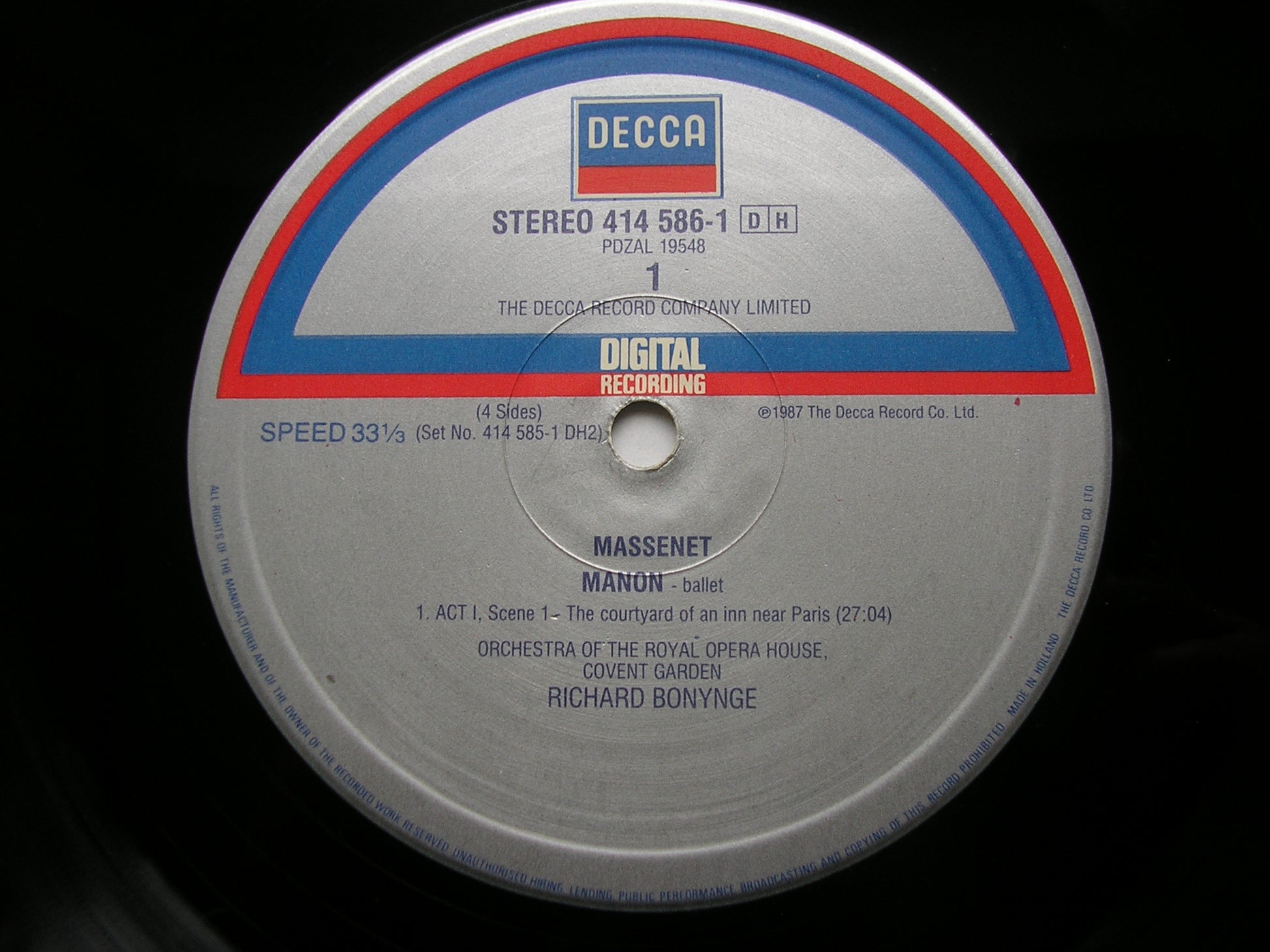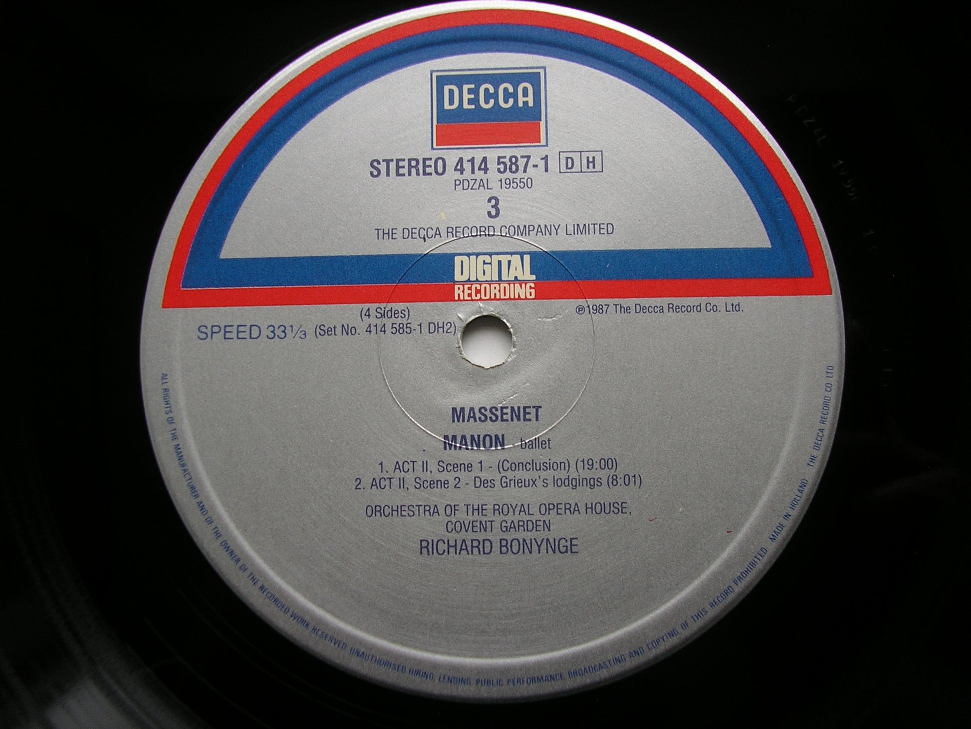 MASSENET: MANON complete ballet BONYNGE / ORCHESTRA OF THE ROYAL OPERA HOUSE COVENT GARDEN 2LP 414 585