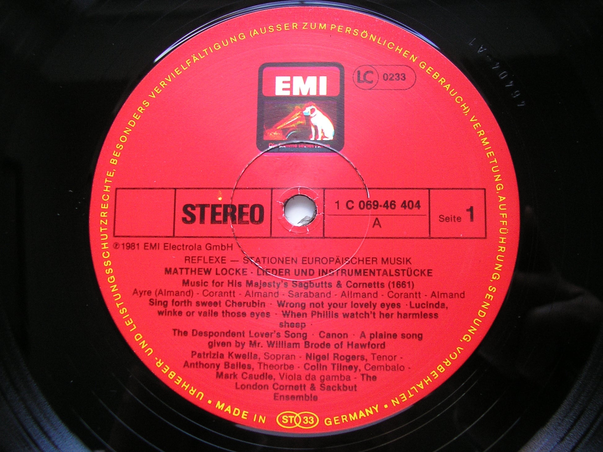 069 46404  MATTHEW LOCKE: SONGS & INSTRUMENTAL MUSIC     PATRIZIA KWELLA / NIGEL ROGERS / THE LONDON CORNETT & SACKBUT ENSEMBLE