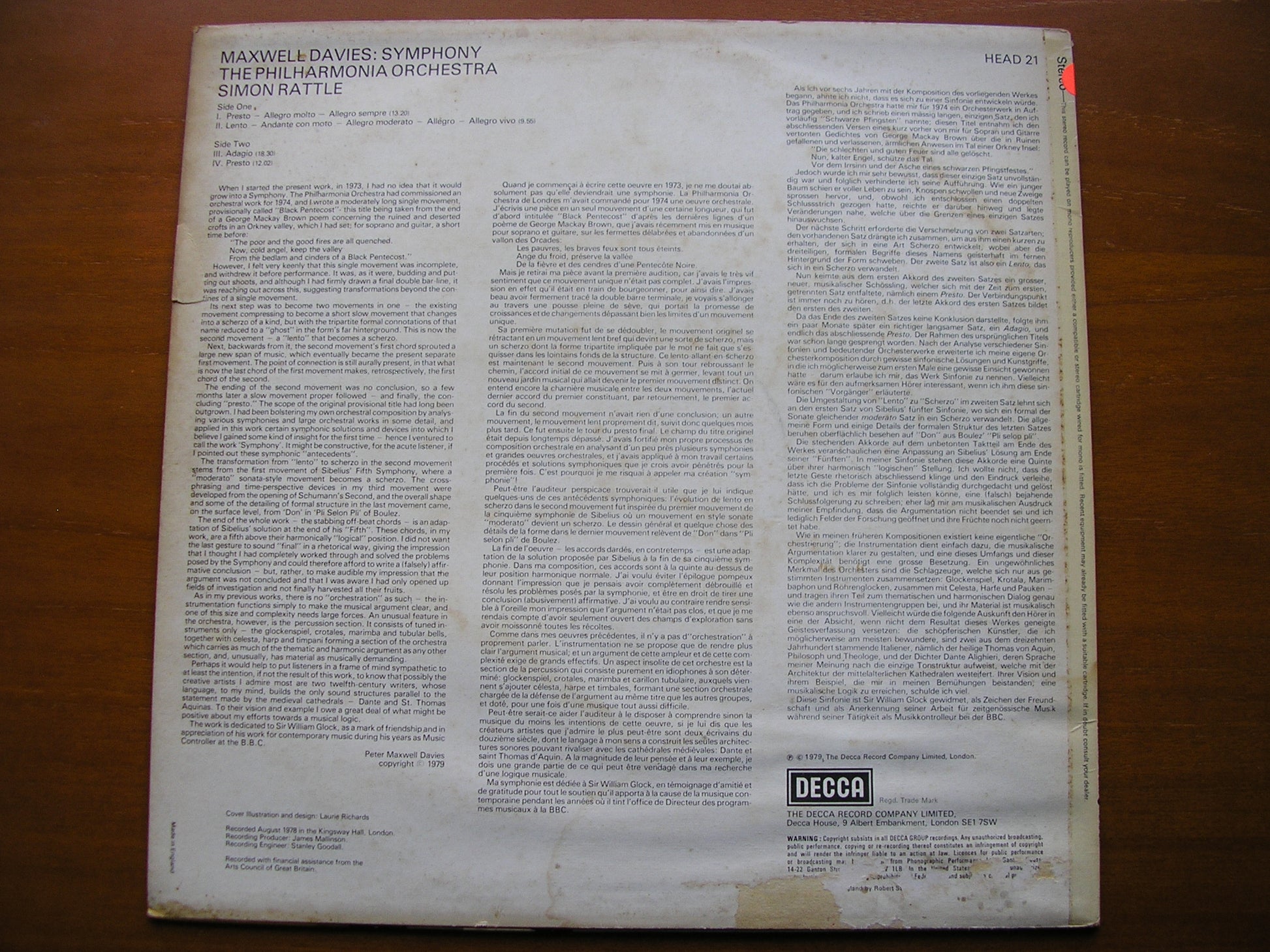 MAXWELL DAVIES: SYMPHONY RATTLE / PHILHARMONIA test pressing HEAD 21