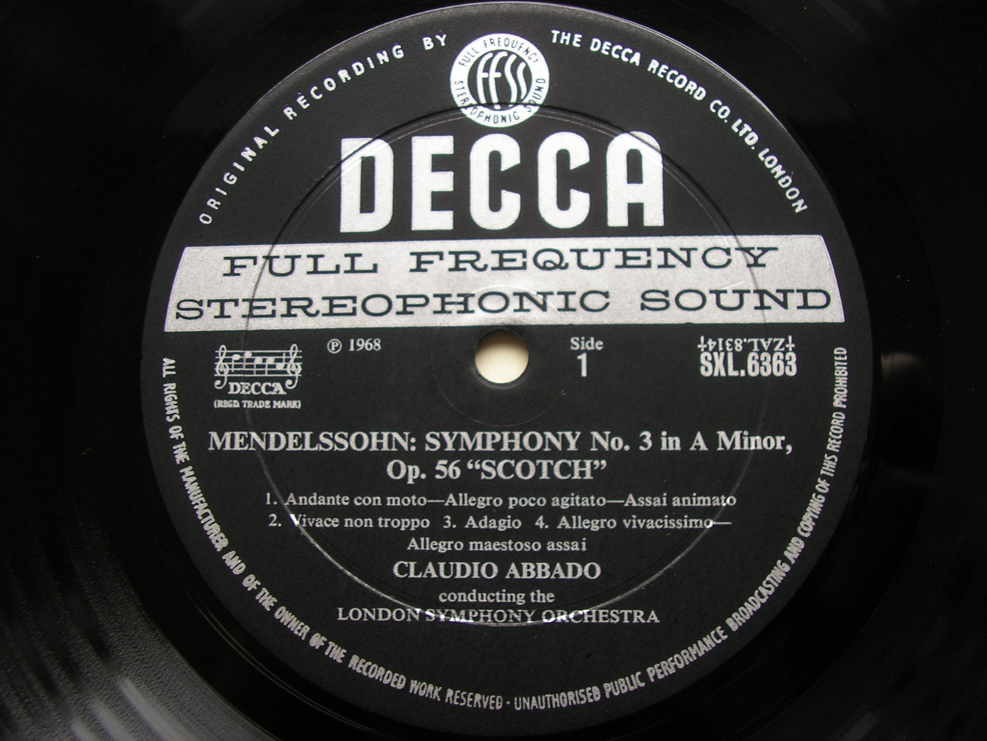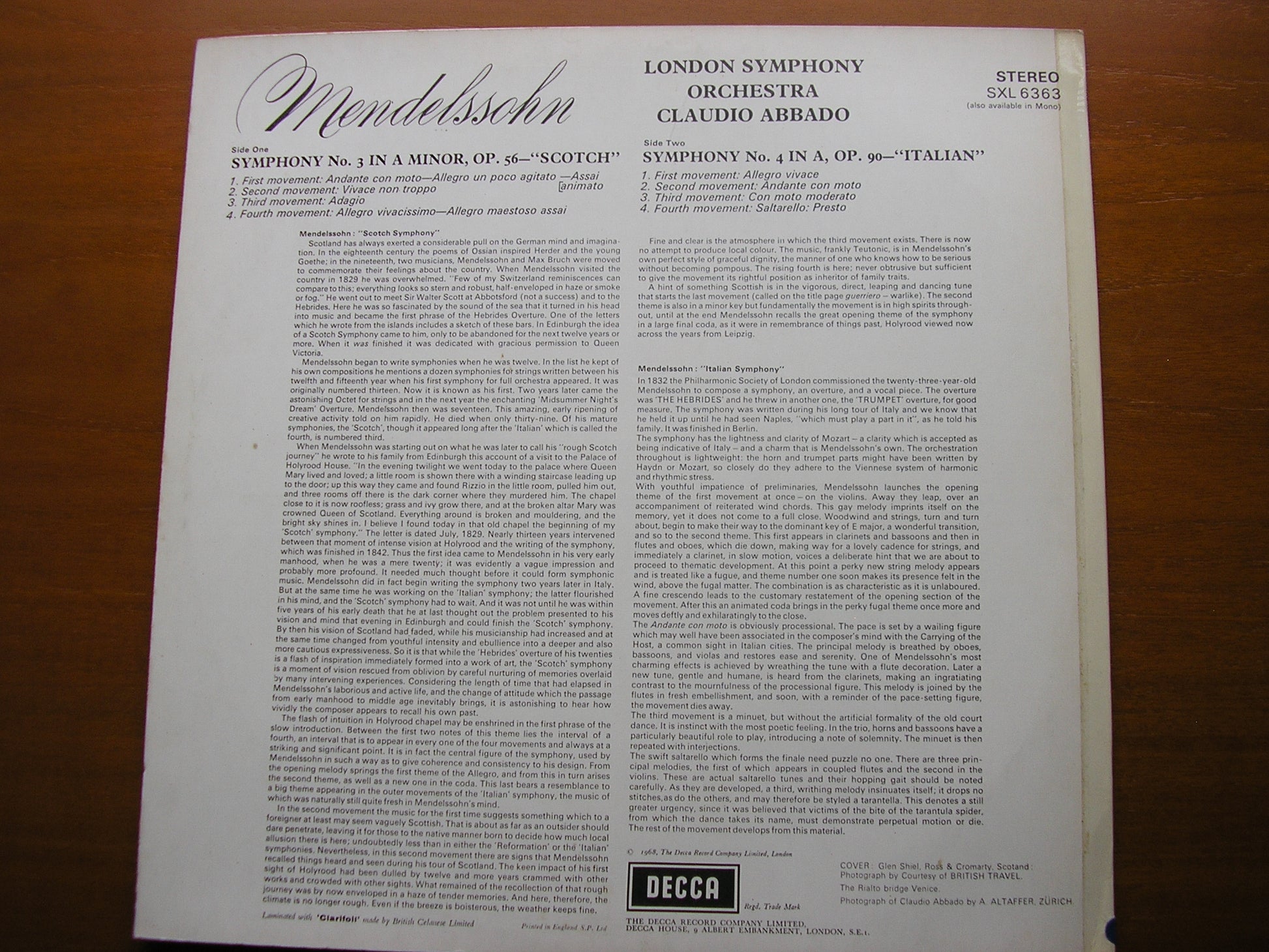 SXL 6363  MENDELSSOHN: SYMPHONIES Nos. 3 & 4      CLAUDIO ABBADO / LONDON SYMPHONY ORCHESTRA