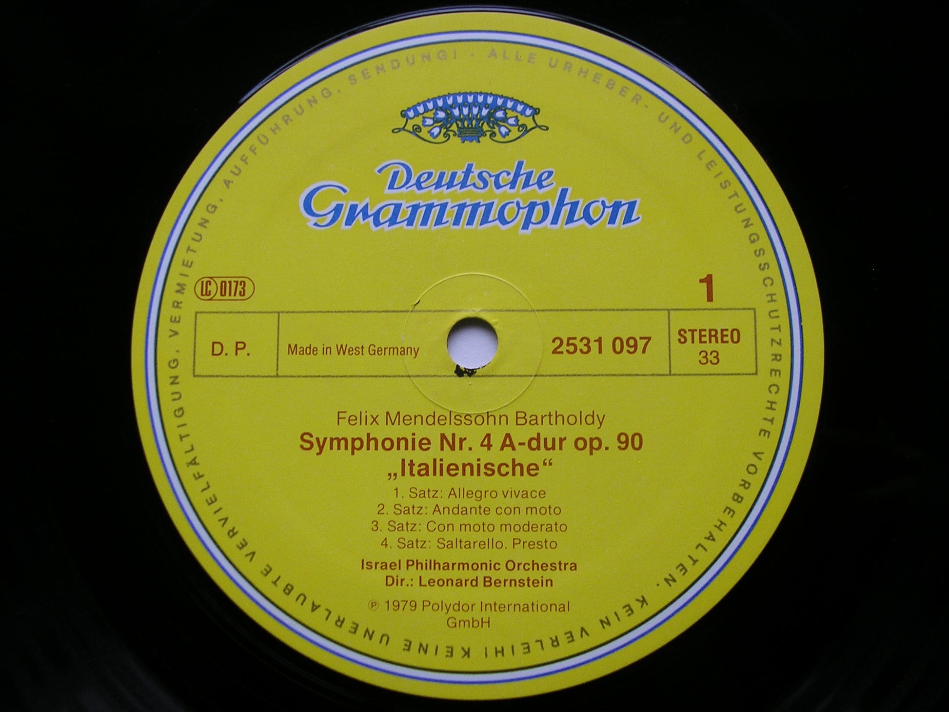 2531 097  MENDELSSOHN: SYMPHONIES Nos. 4 & 5     LEONARD BERNSTEIN / ISRAEL PHILHARMONIC ORCHESTRA