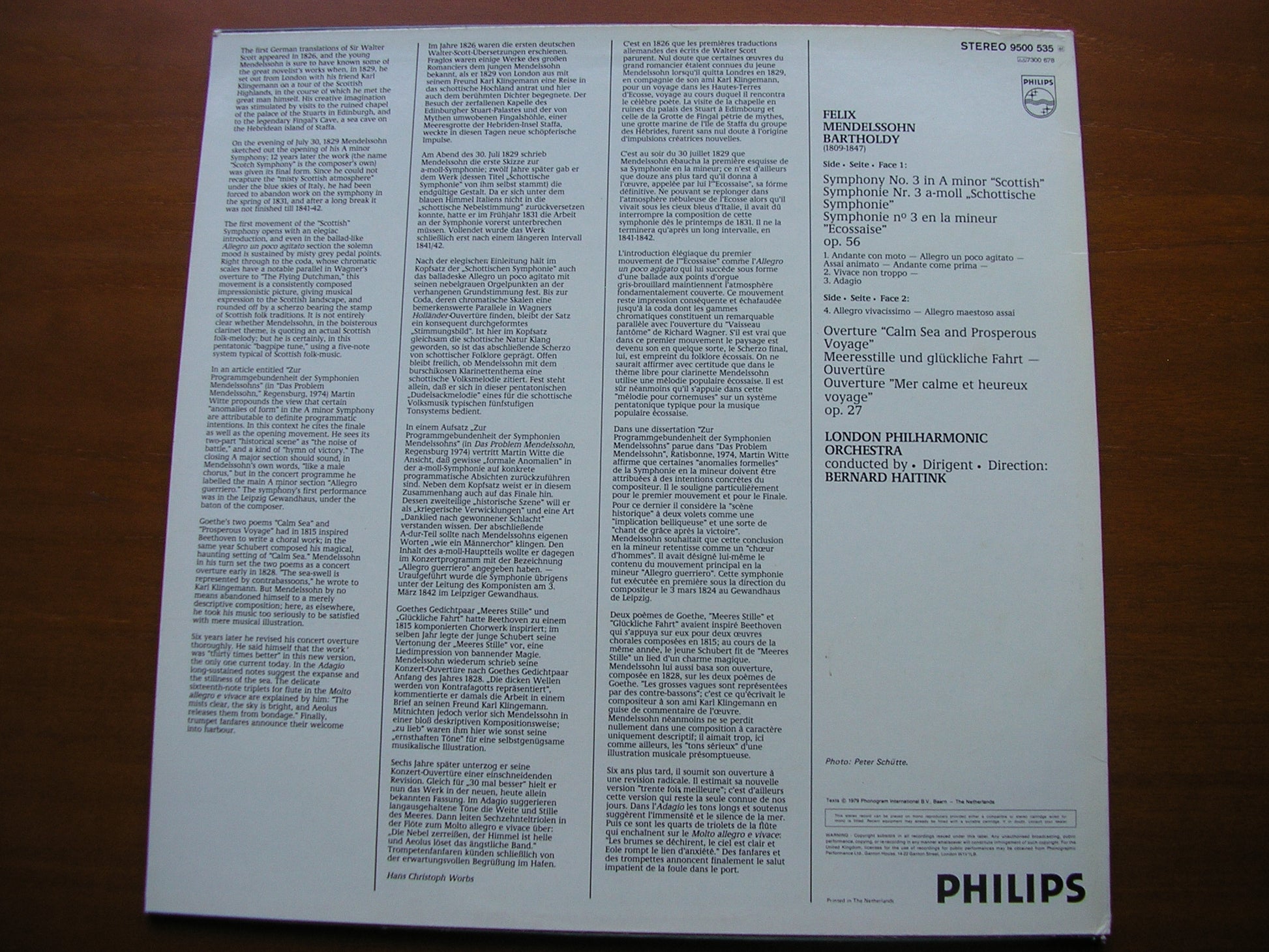 9500 535  MENDELSSOHN: SYMPHONY No. 3 / OVERTURE Calm Sea & Prosperous Voyage BERNARD HAITINK / LONDON PHILHARMONIC ORCHESTRA