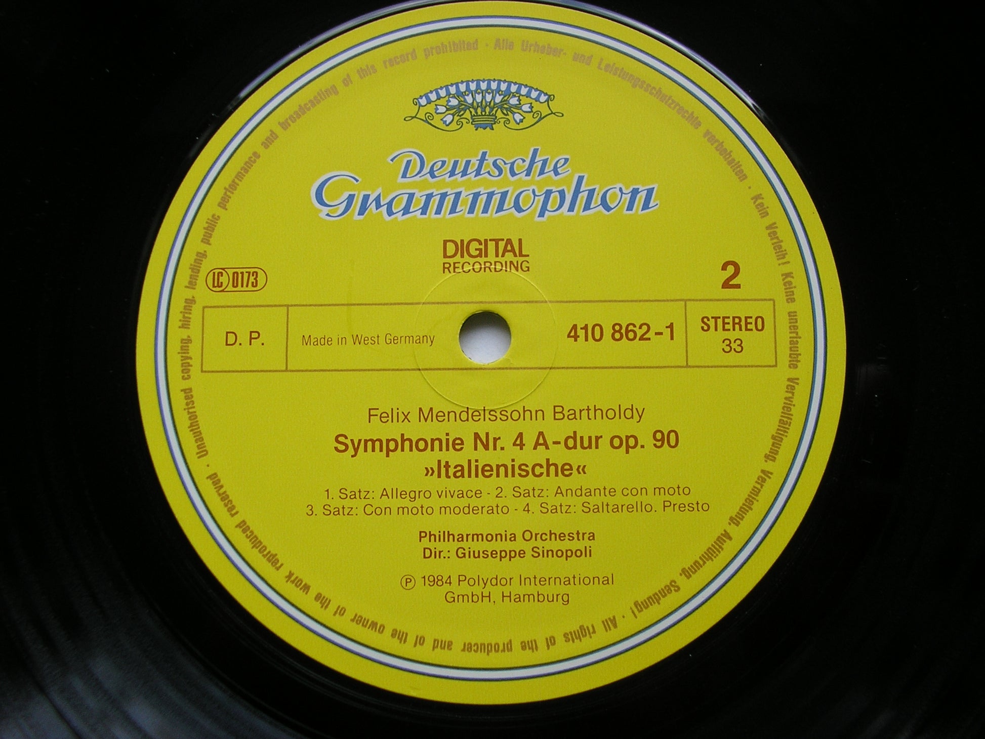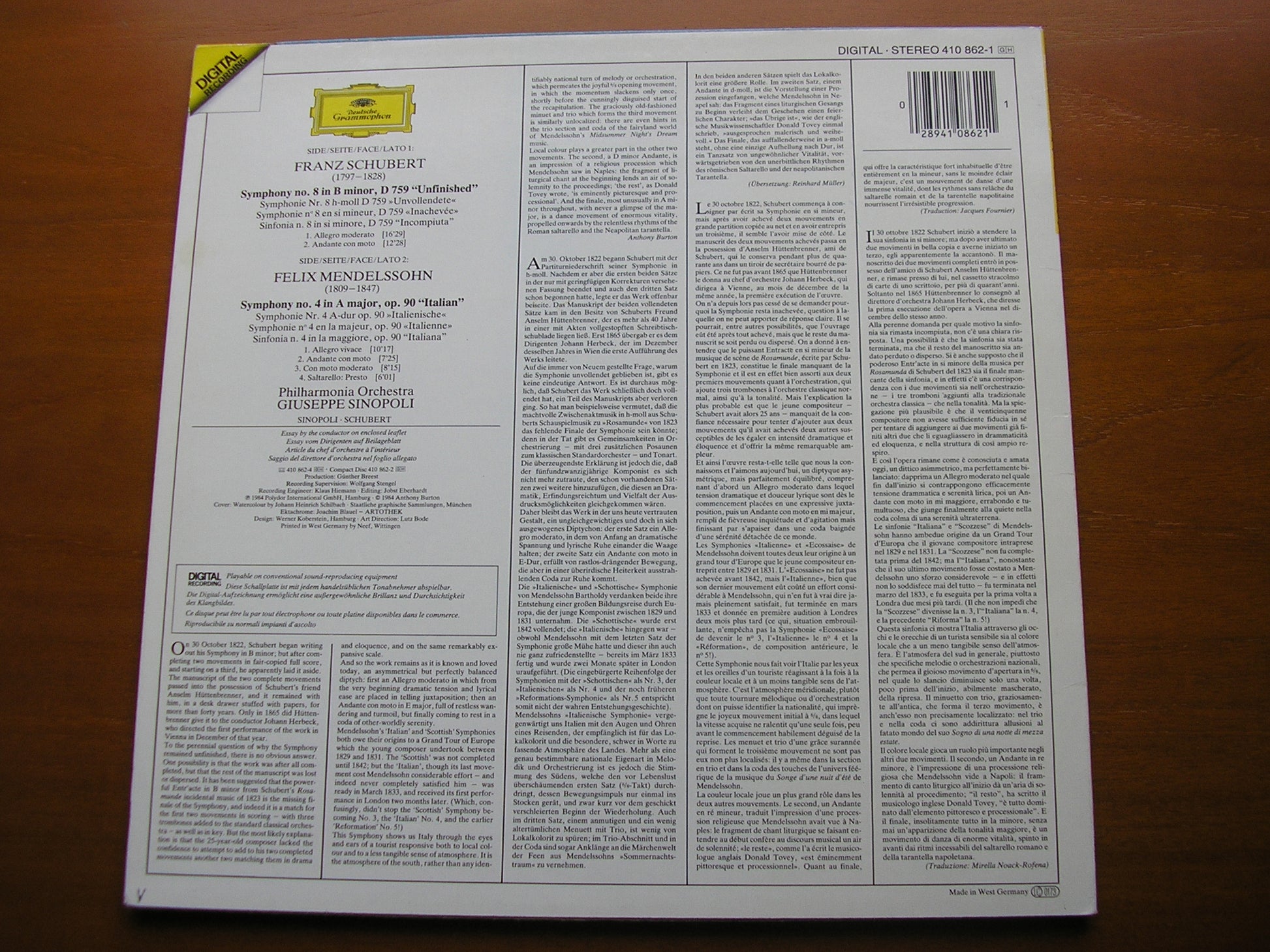 410 862  MENDELSSOHN: SYMPHONY No. 4 / SCHUBERT: SYMPHONY No. 8    GIUSEPPE SINOPOLI / PHILHARMONIA ORCHESTRA