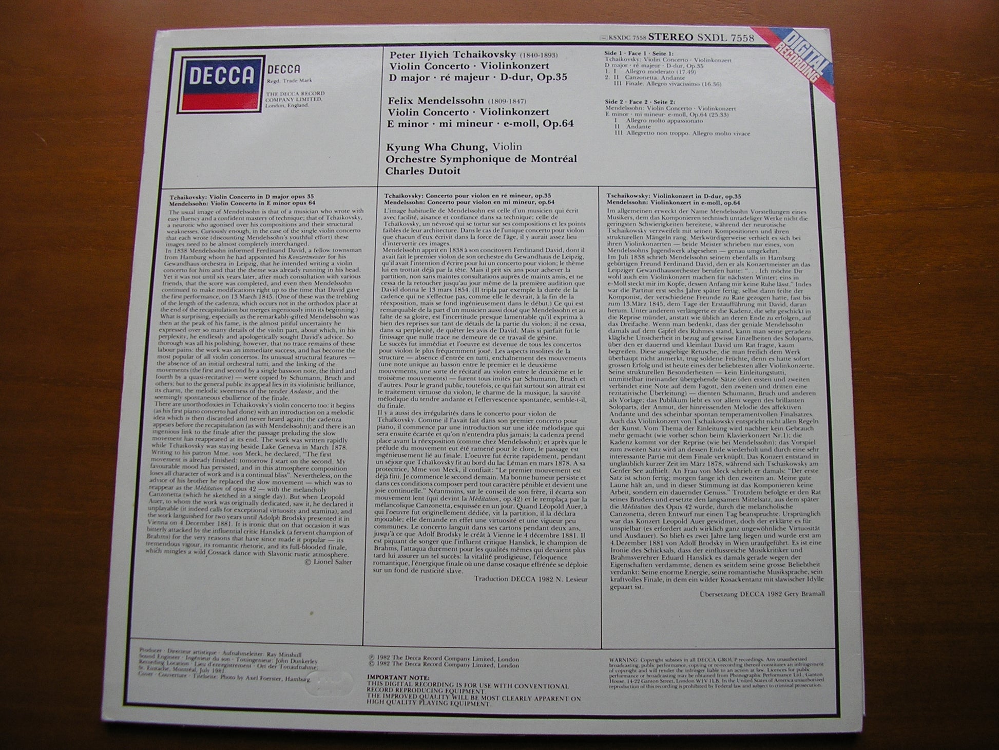 SXDL 7558  MENDELSSOHN & TCHAIKOVSKY: VIOLIN CONCERTOS    KYUNG WHA CHUNG / MONTREAL SYMPHONY ORCHESTRA / CHARLES DUTOIT