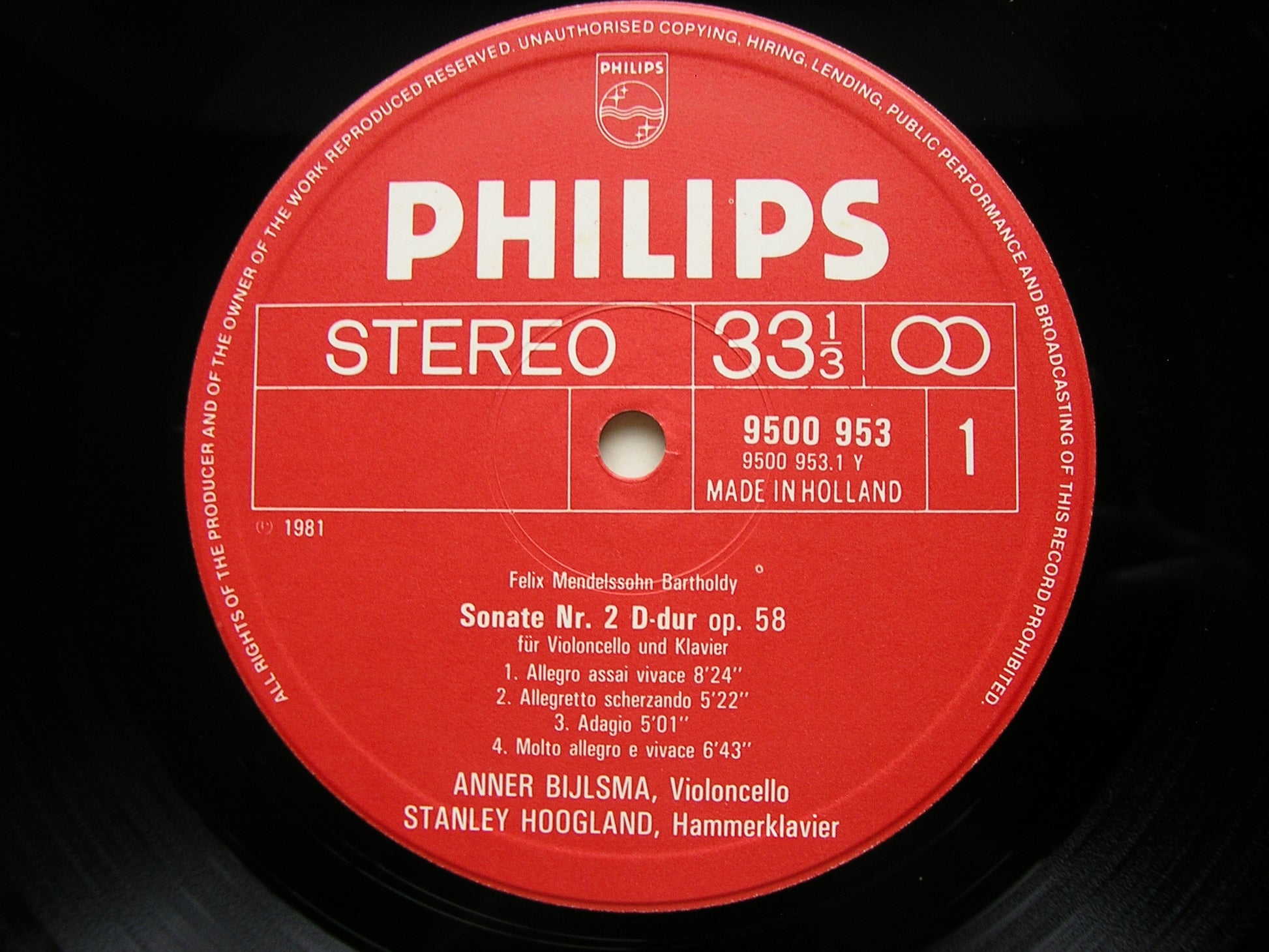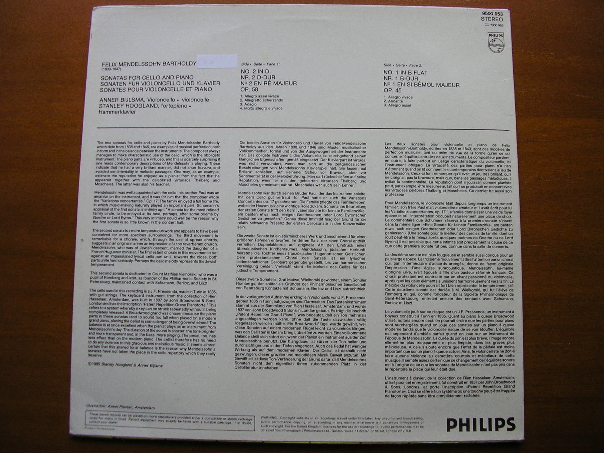 MENDELSSOHN: TWO SONATAS FOR CELLO & PIANO ANNER BIJLSMA / STANLEY HOOGLAND 9500 953