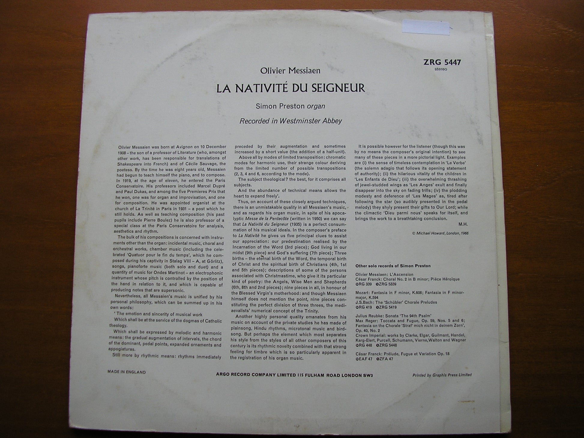 MESSIAEN: LA NATIVITE DU SEIGNEUR SIMON PRESTON ZRG 5447