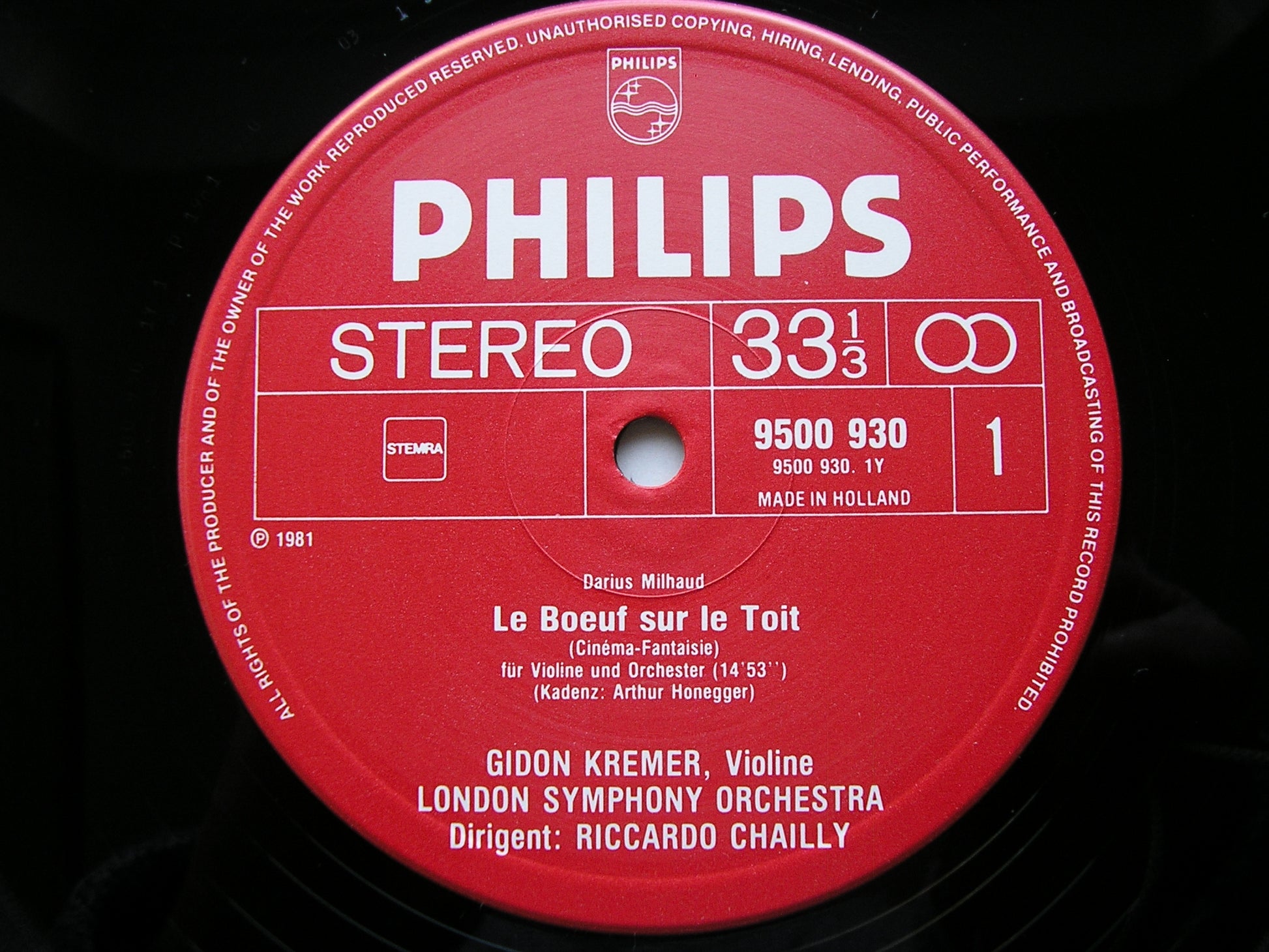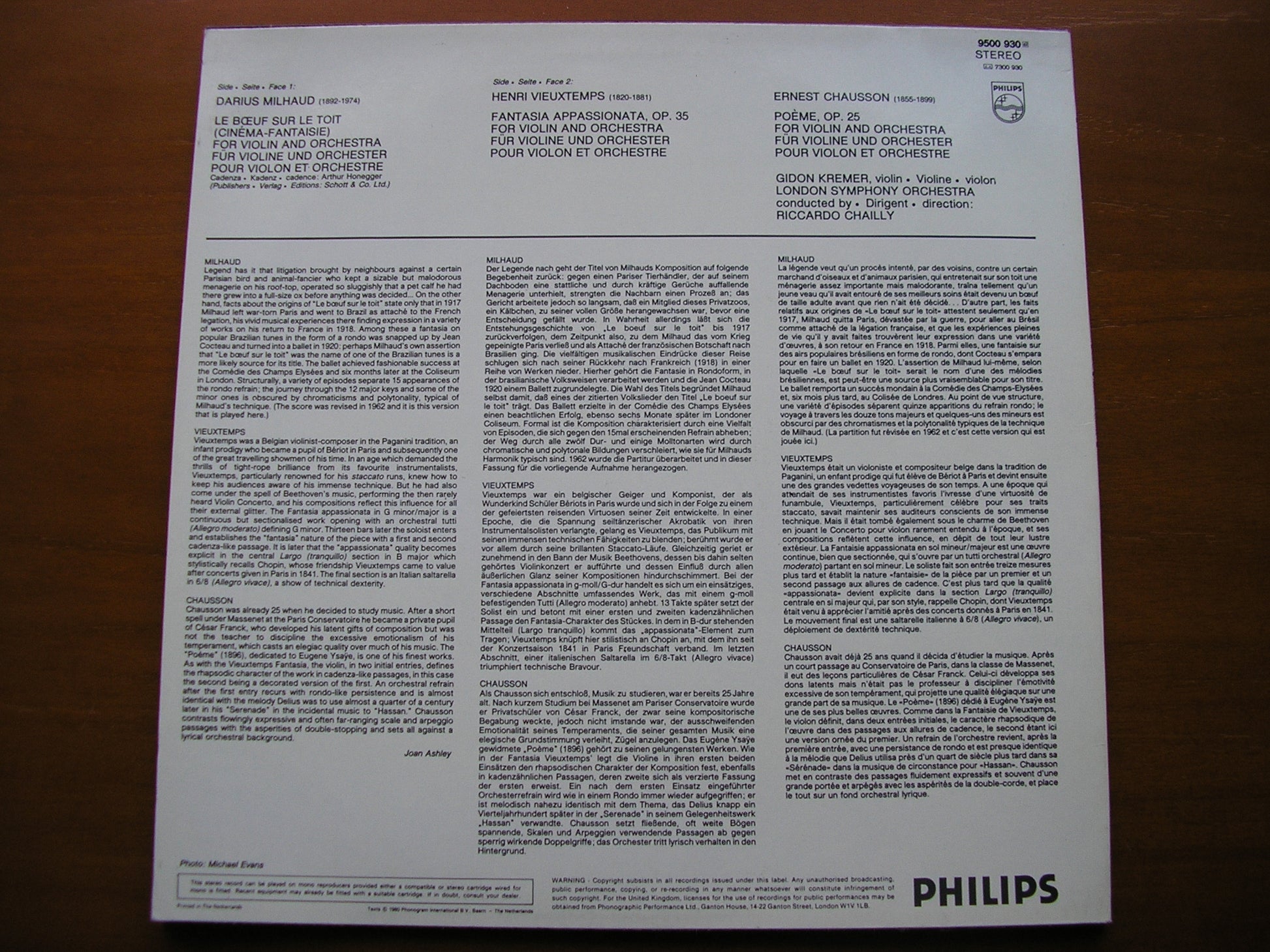 9500 930  MILHAUD: LE BOEUF SUR LE TOIT / CHAUSSON: POEME / VIEUXTEMPS: FANTASIA APPASSIONATA      GIDON KREMER / LONDON SYMPHONY ORCHESTRA / RICCARDO CHAILLY