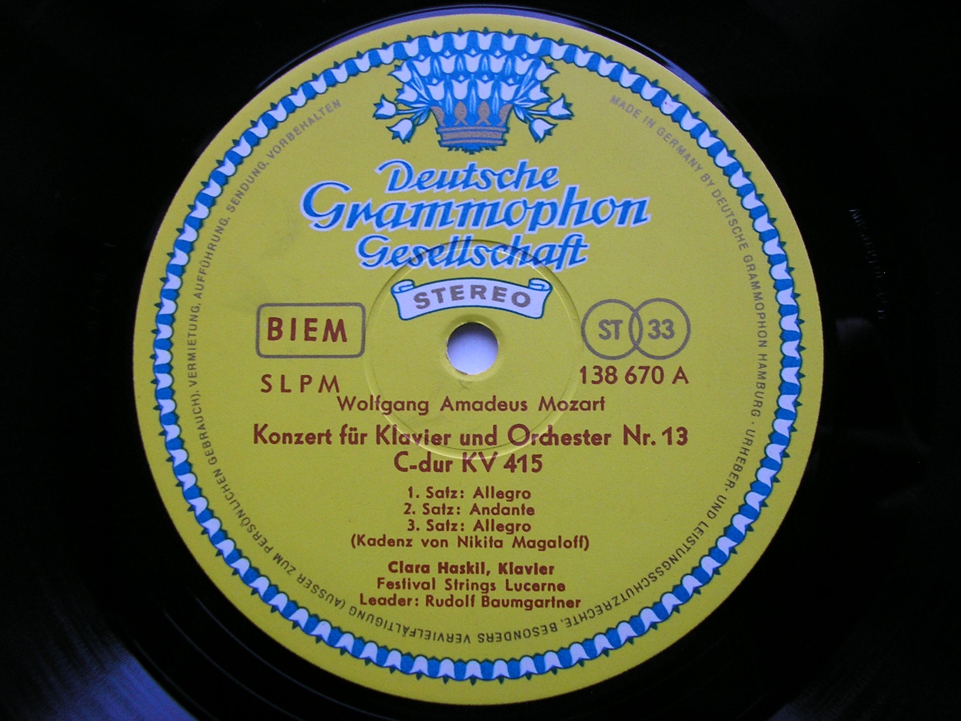 138 670  MOZART: PIANO CONCERTO K415 / SONATA in F K 280 / VARIATIONS in C K265  CLARA HASKIL / LUCERNE FESTIVAL STRINGS / RUDOLF BAUMGARTNER