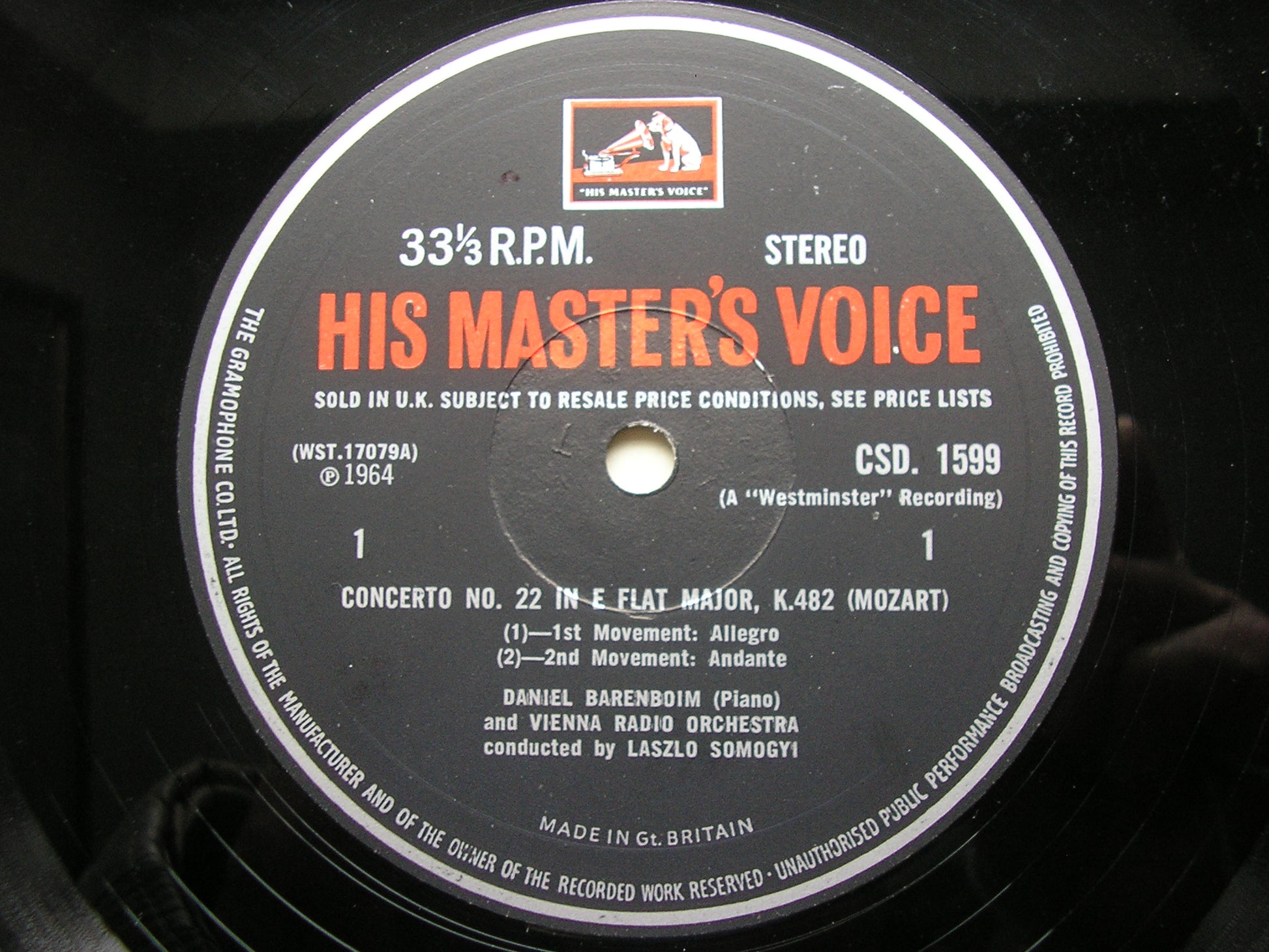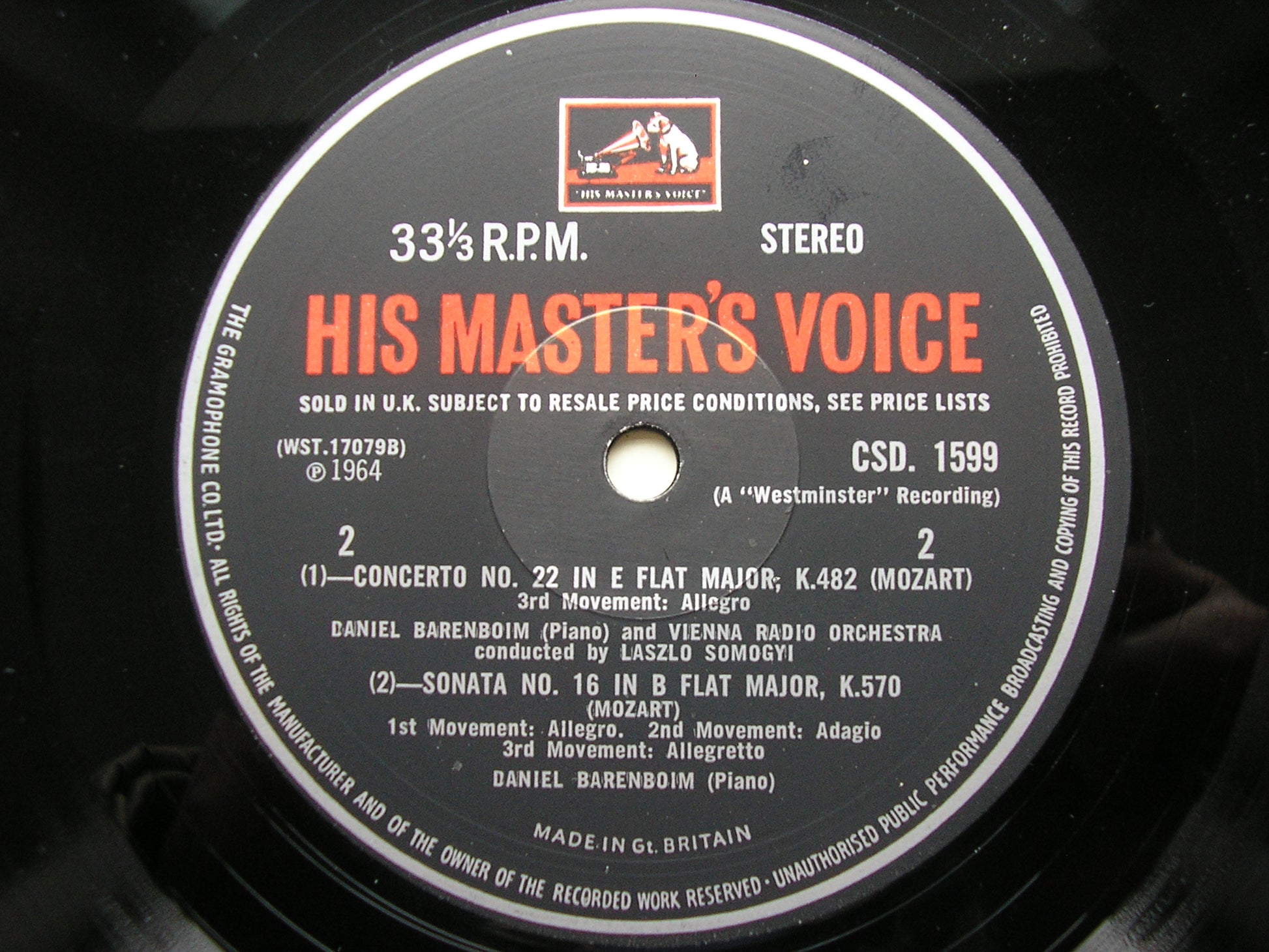 CSD 1599  MOZART: PIANO CONCERTO No. 22 K482 / PIANO SONATA No. 16 K570   DANIEL BARENBOIM / VIENNA RADIO ORCHESTRA / LASZLO SOMOGYI