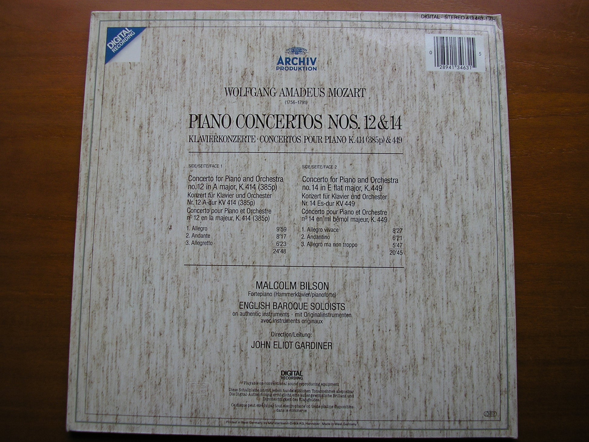 MOZART: PIANO CONCERTOS Nos. 12 & 14 BILSON / ENGLISH BAROQUE SOLOISTS / GARDINER 413 463