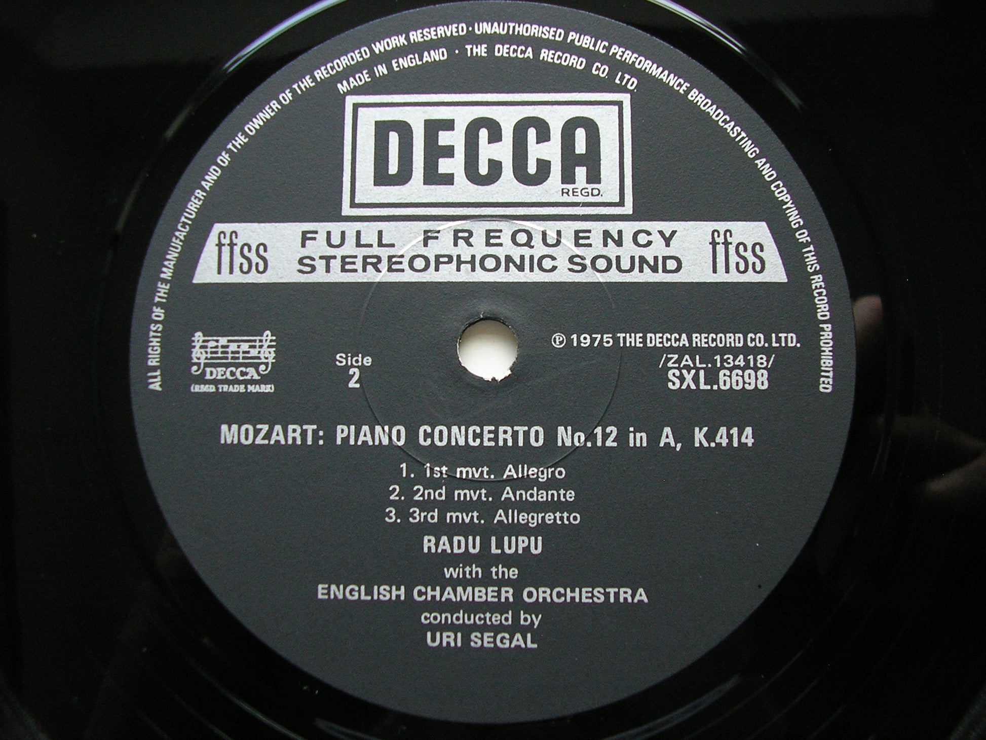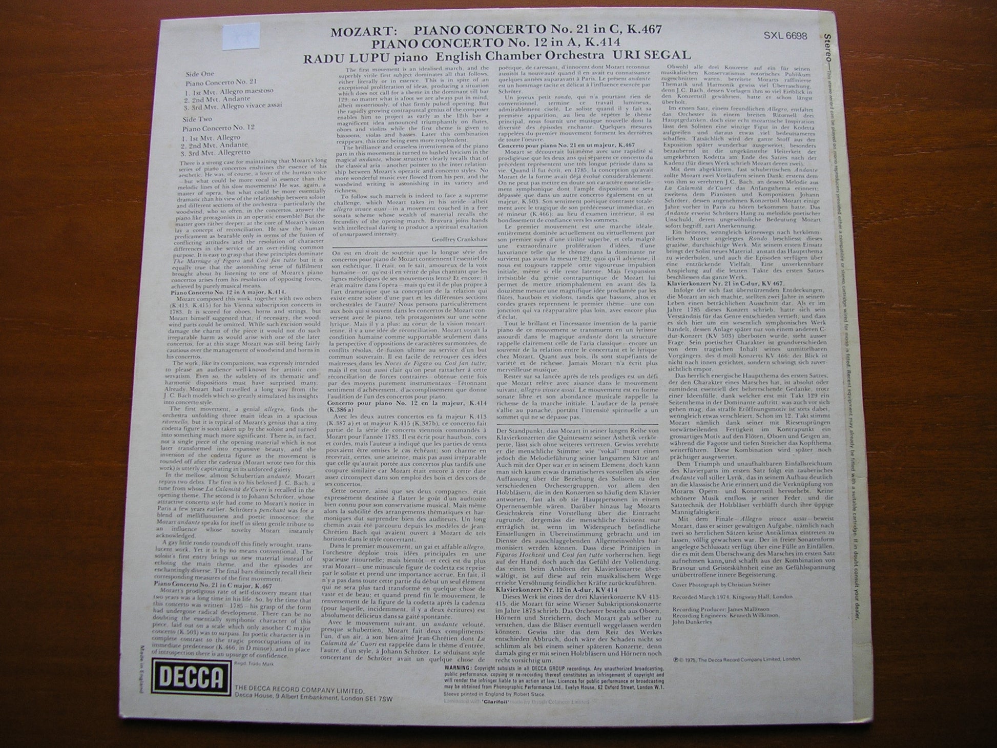 SXL 6698  MOZART: PIANO CONCERTOS Nos. 12 & 21     RADU LUPU / ENGLISH CHAMBER ORCHESTRA / URI SEGAL