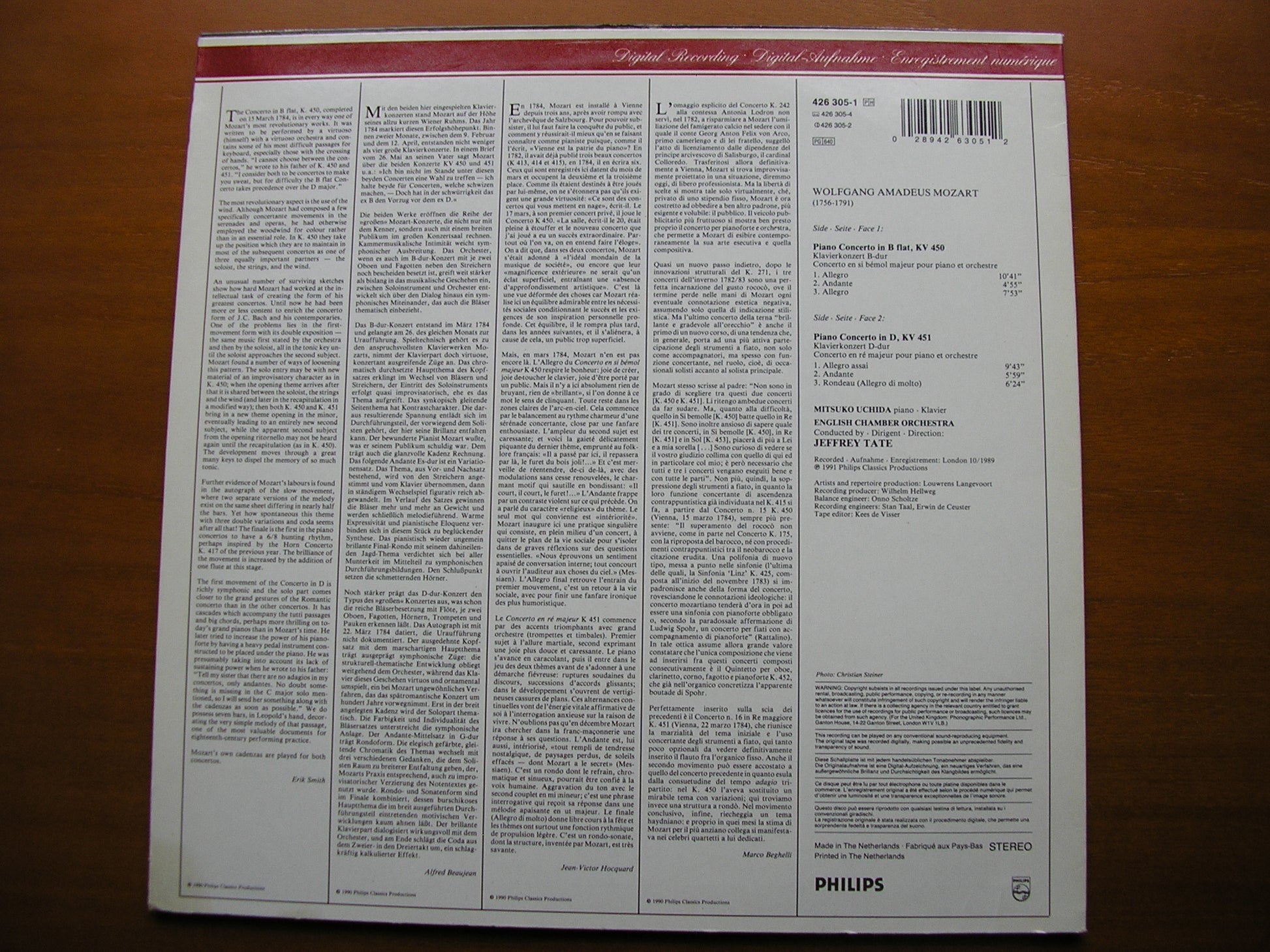 426 305  MOZART: PIANO CONCERTOS K450 & K451      MITSUKO UCHIDA / ENGLISH CHAMBER ORCHESTRA / JEFFREY TATE