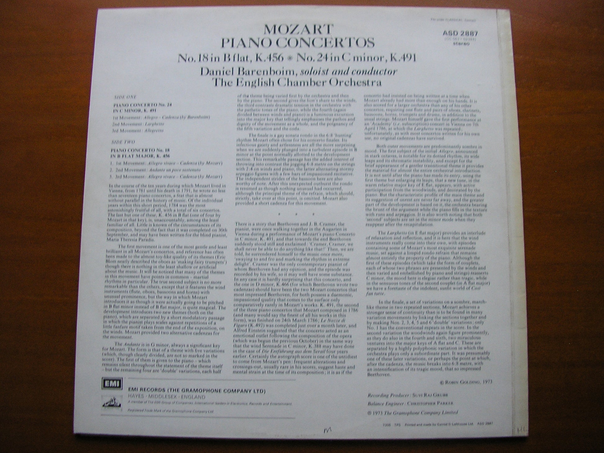 MOZART: PIANO CONCERTOS Nos. 18 & 24 BARENBOIM / ENGLISH CHAMBER ORCHESTRA ASD 2887