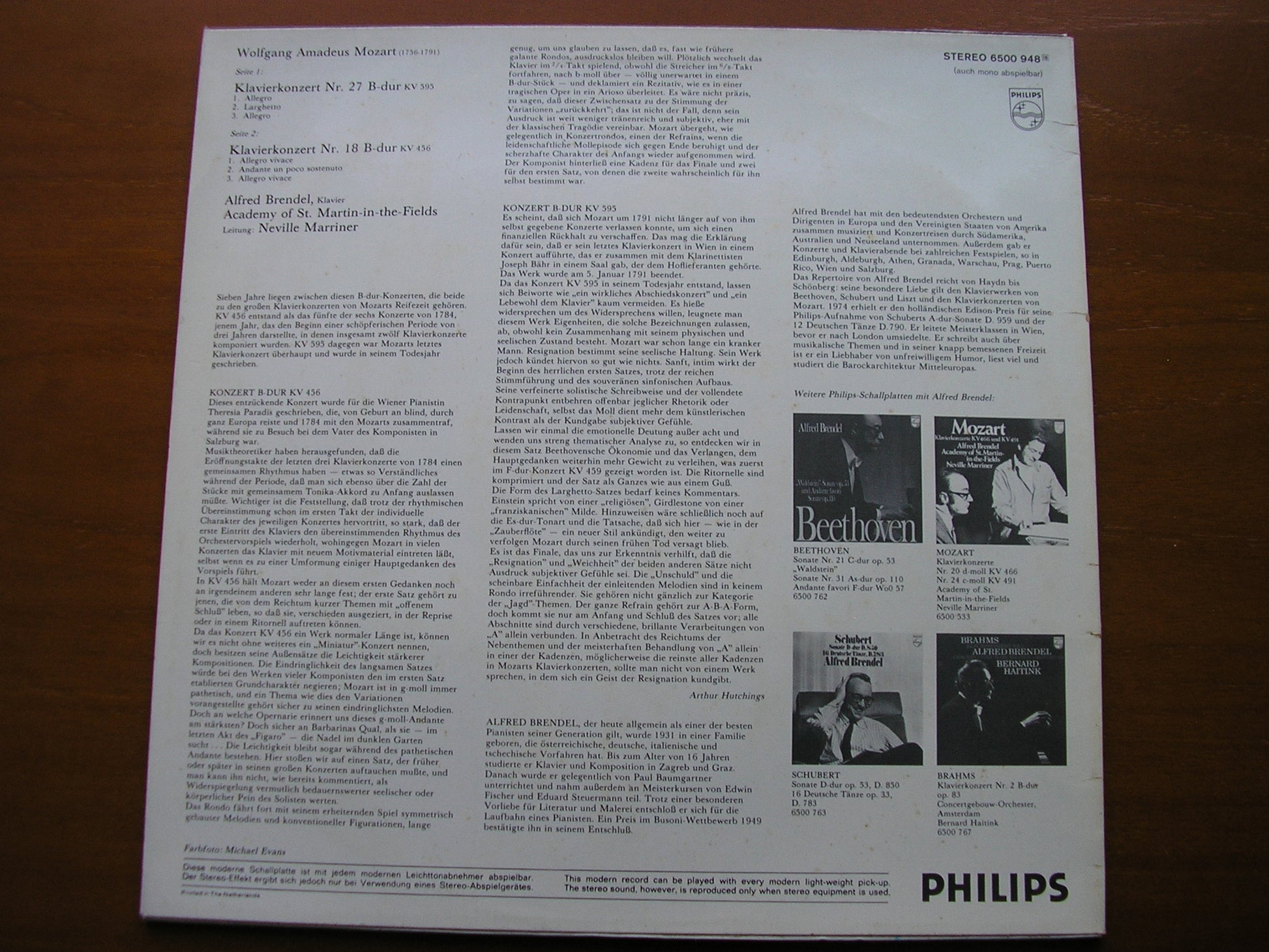6500 948  MOZART: PIANO CONCERTOS K456 & K595      ALFRED BRENDEL / ACADEMY OF ST MARTINS IN THE FIELDS / NEVILLE MARRINER