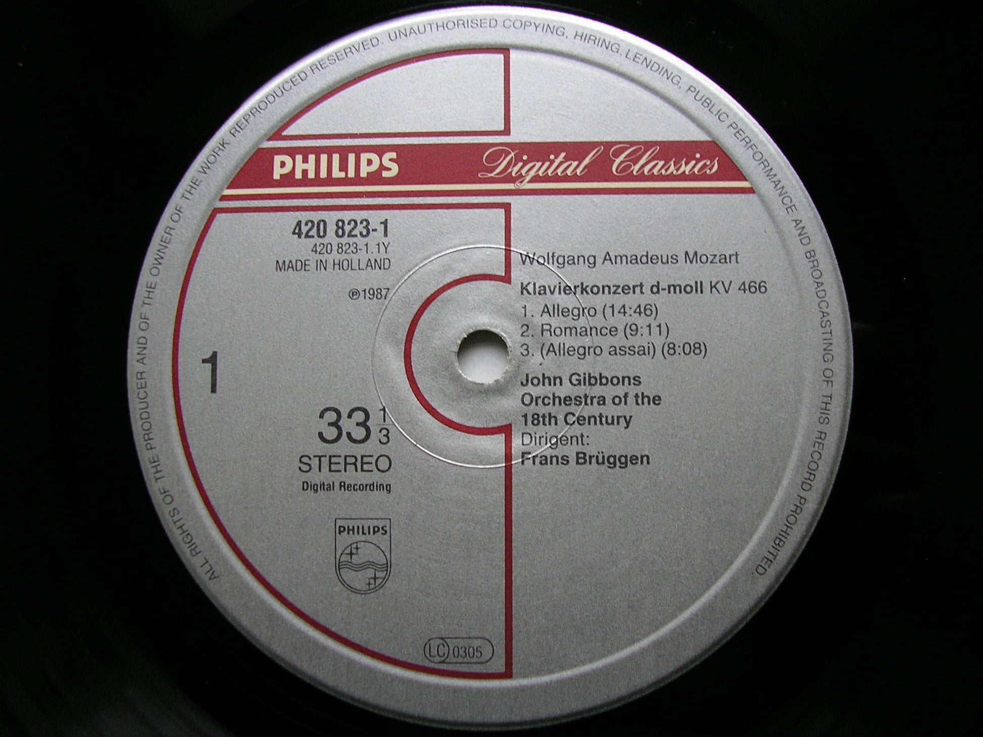 420 823  MOZART: PIANO CONCERTOS K466 & K491     JOHN GIBBONS / ORCHESTRA OF THE 18th CENTURY / FRANS BRUGGEN