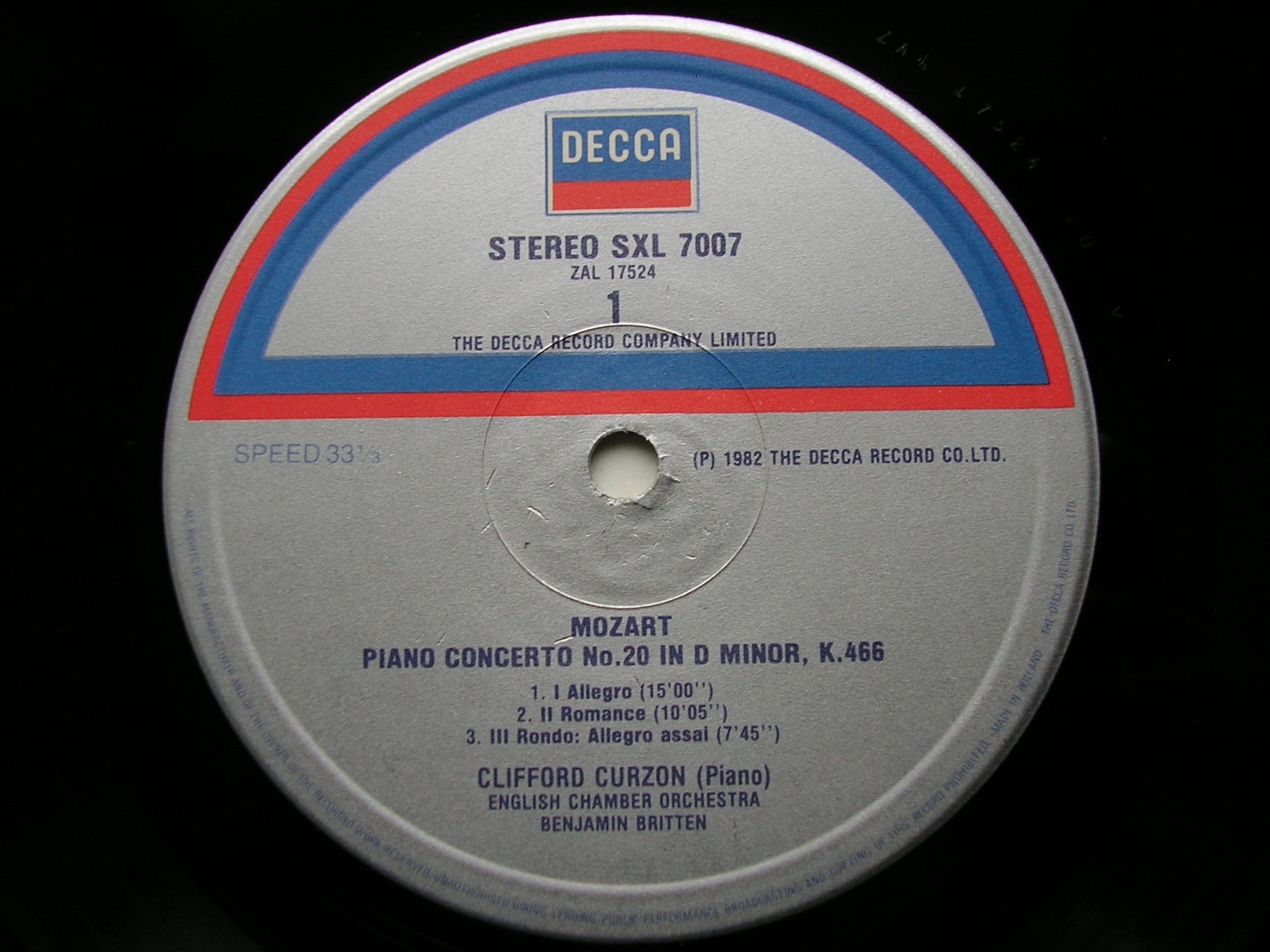 SXL 7007  MOZART: PIANO CONCERTOS K466 & K595     CLIFFORD CURZON / ENGLISH CHAMBER ORCHESTRA / BENJAMIN BRITTEN